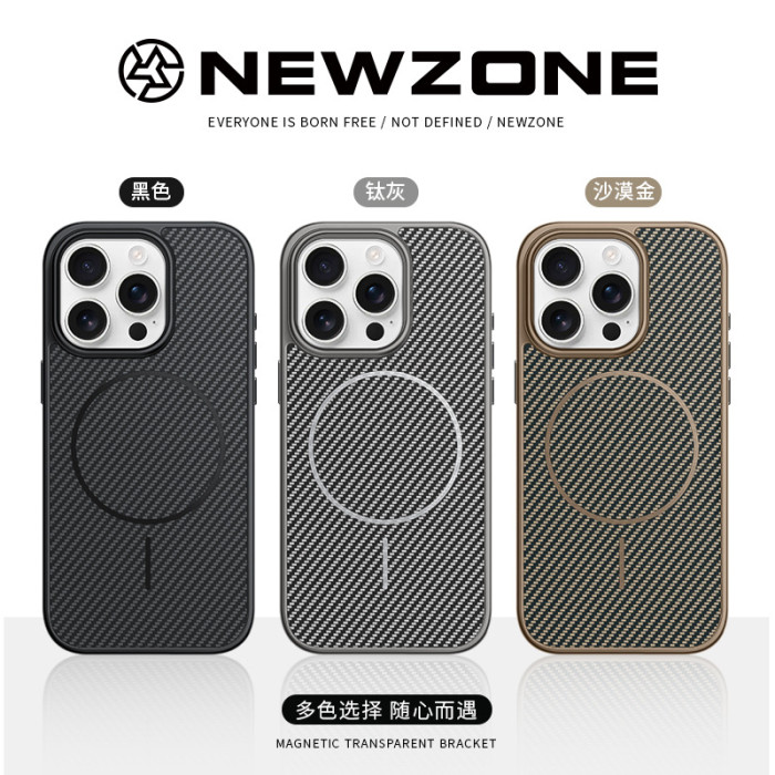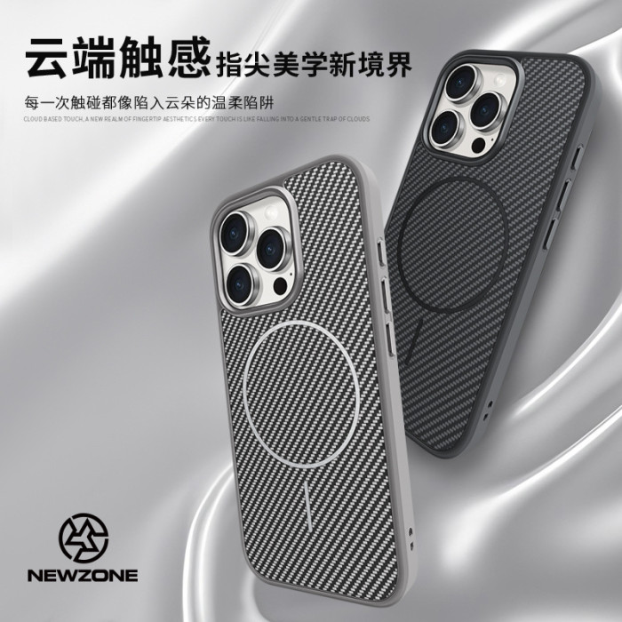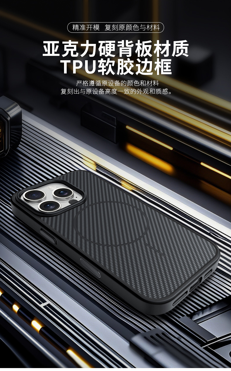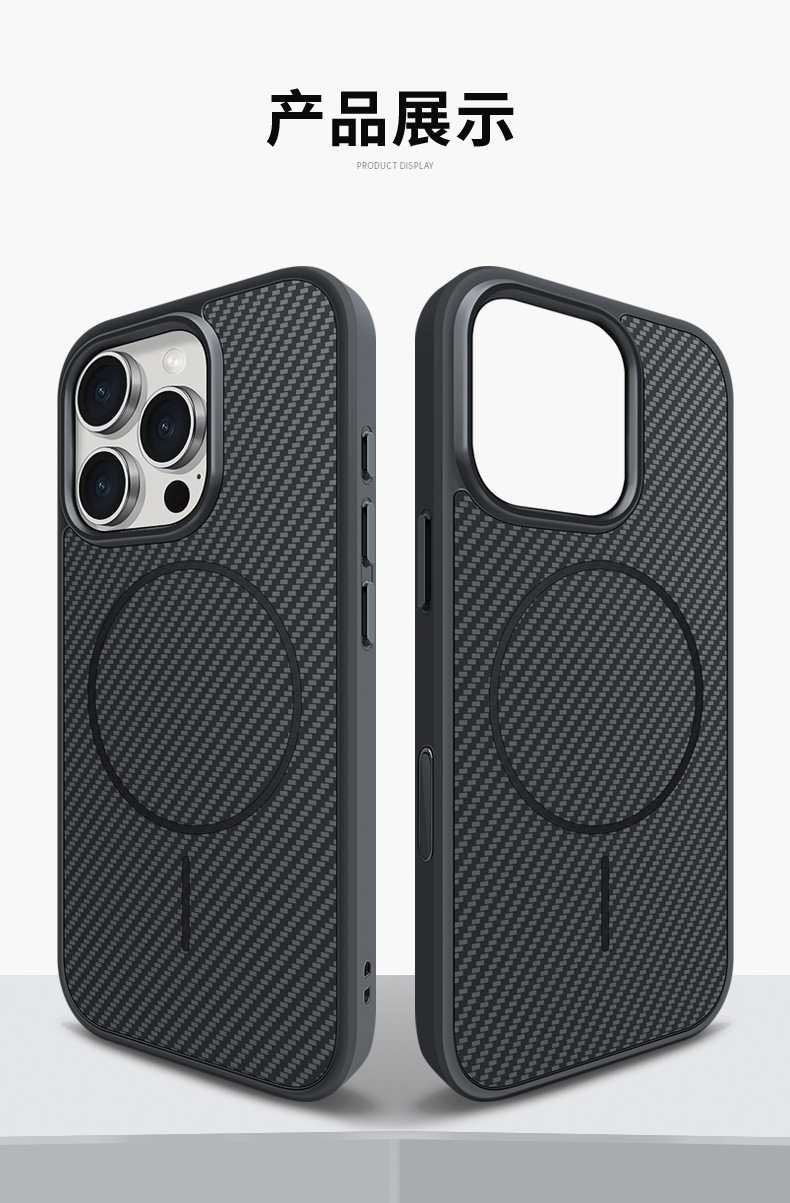 適用iPhone16promax手機殼細圈磁吸蘋果15pro碳纖維紋膚感保護套