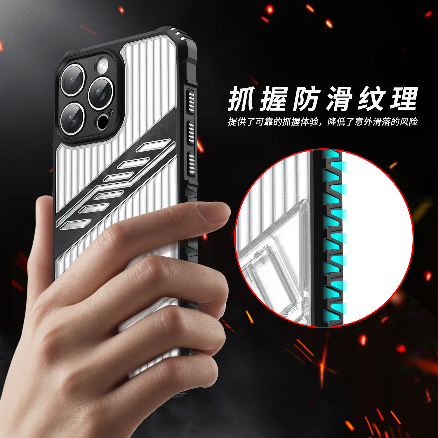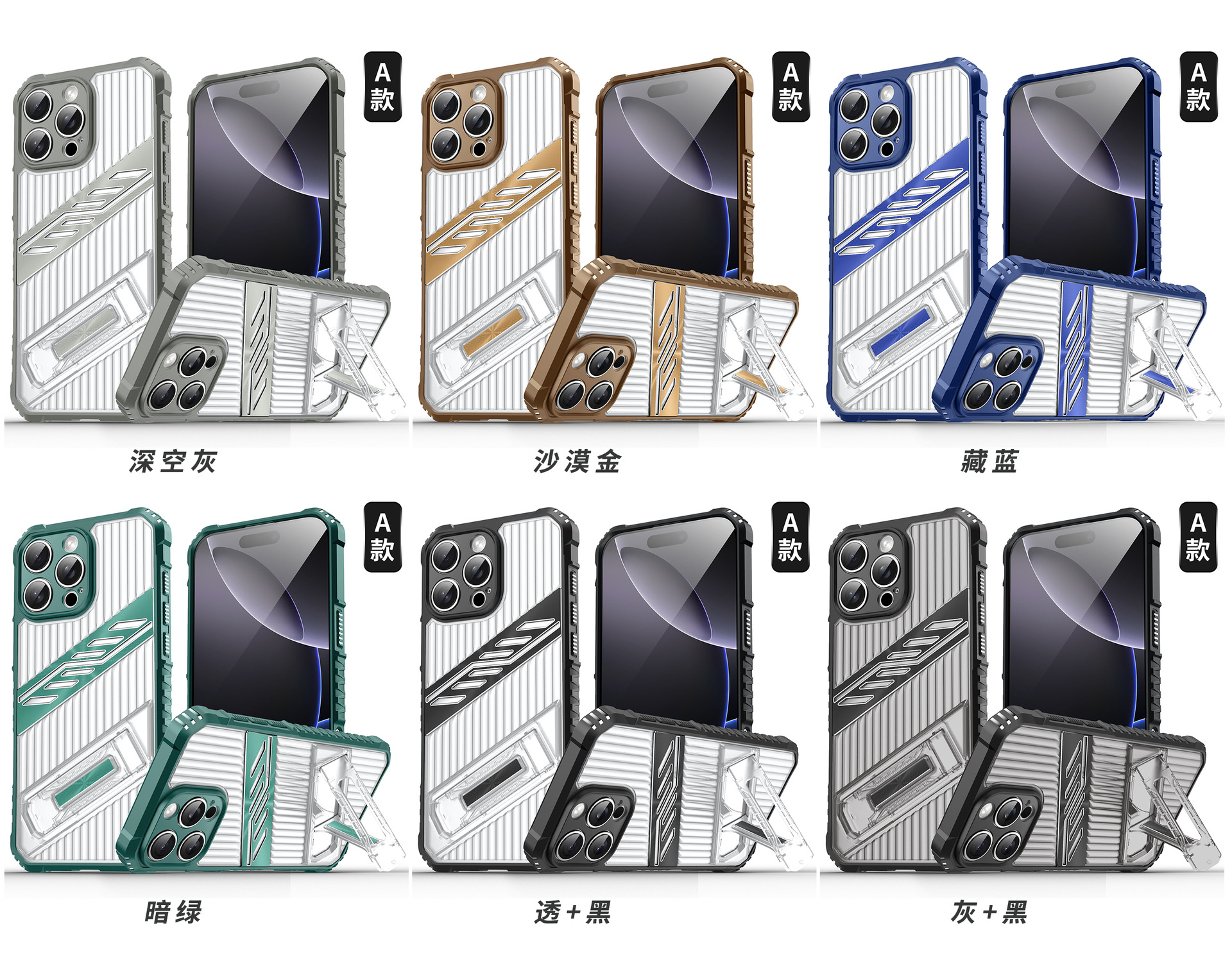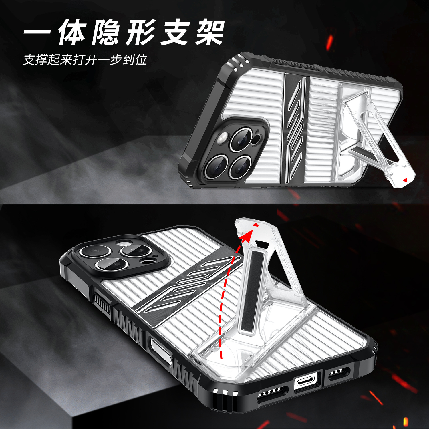 適用iPhone16ProMax戰影手機殼蘋果15Pro透明14支架防摔13保護套