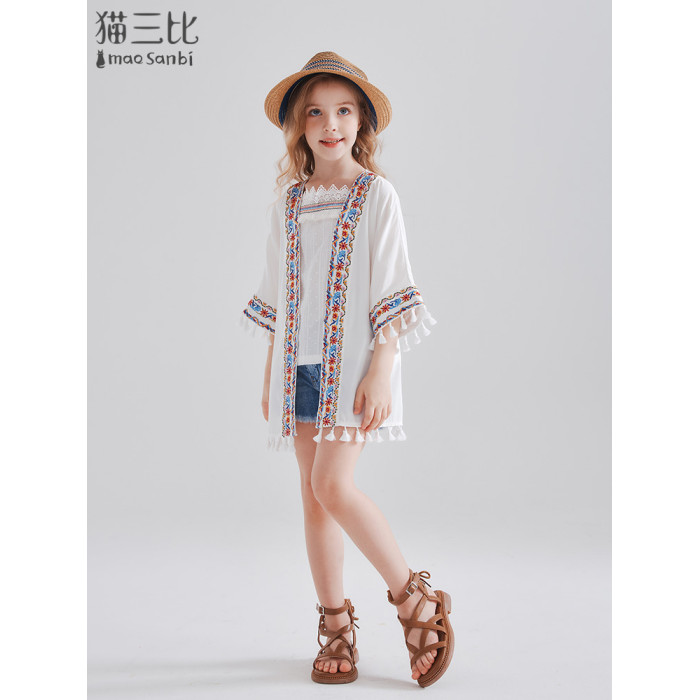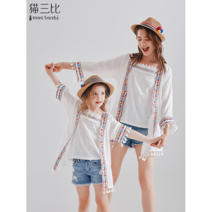 度假刺綉防曬衫親子裝夏季兒童沙漠草原旅遊開衫女童防曬外套薄款