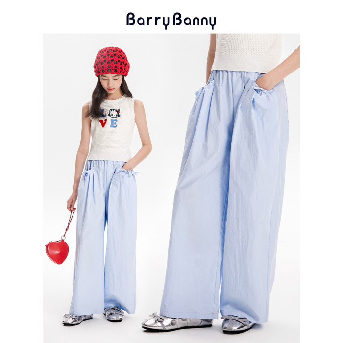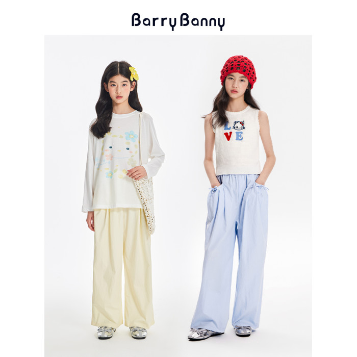 BarryBanny女童濶腿褲2025夏季新款兒童中大童休閒寬松直筒長褲子
