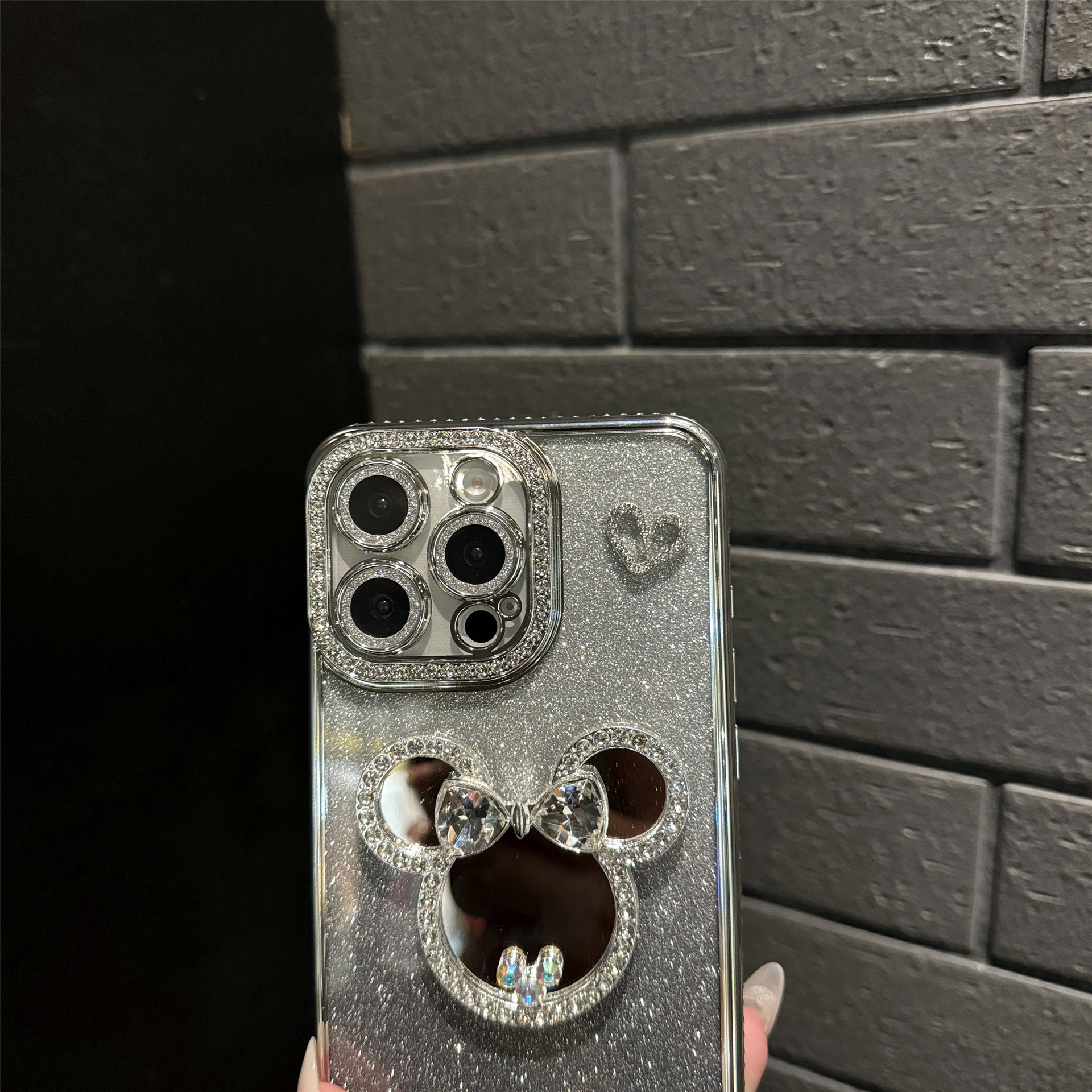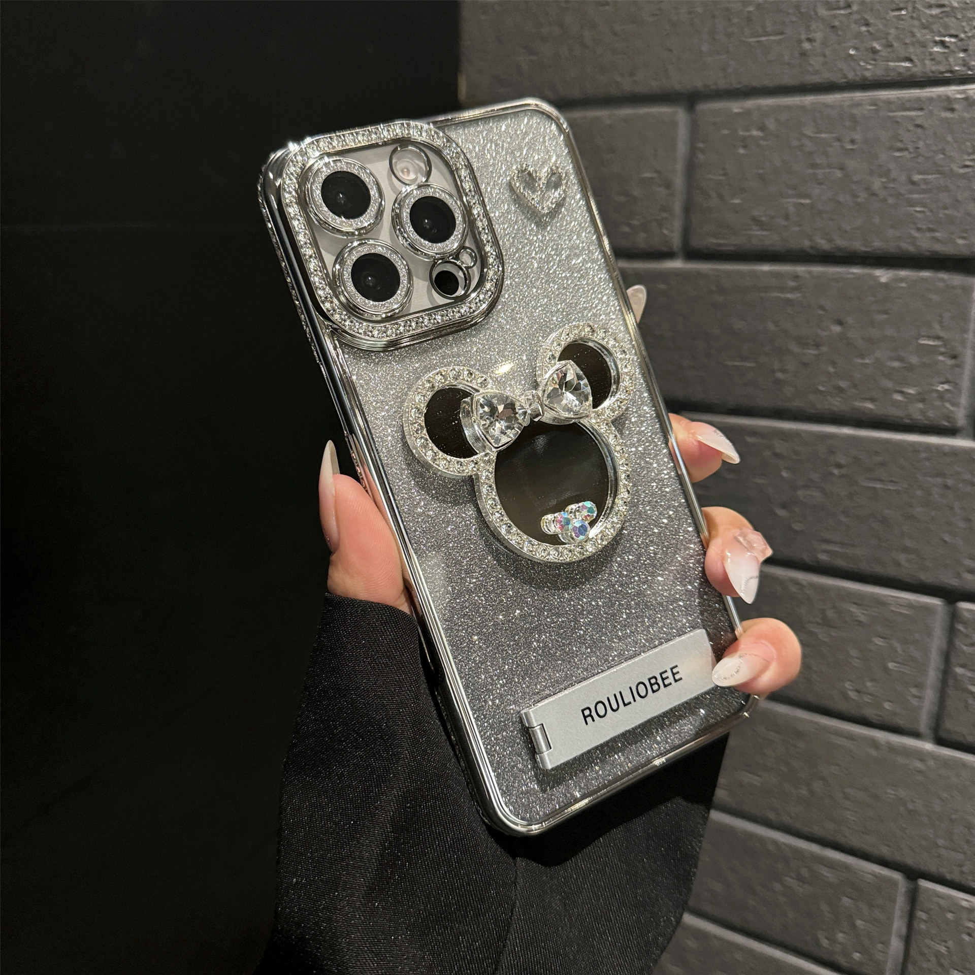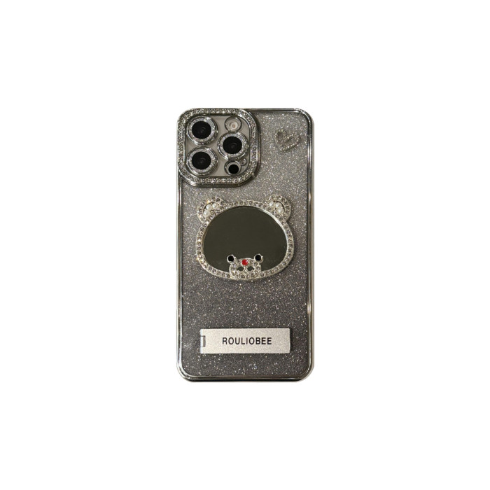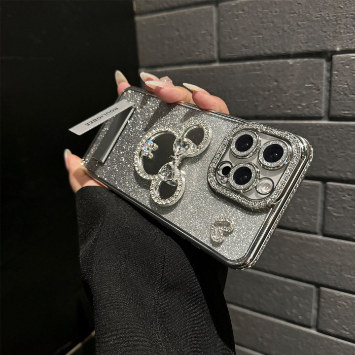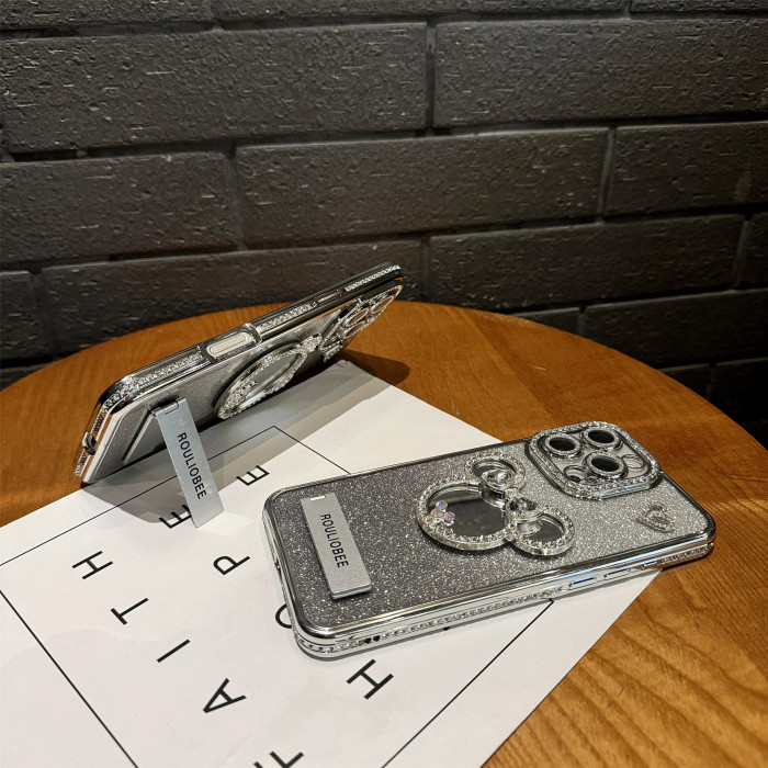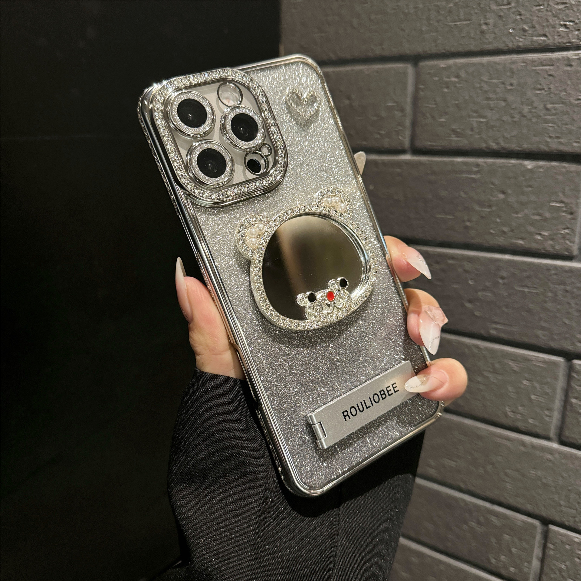 閃粉鏡子支架手機殼適用iphone17promax蘋果16邊框鑲鑽14帶鏡頭膜