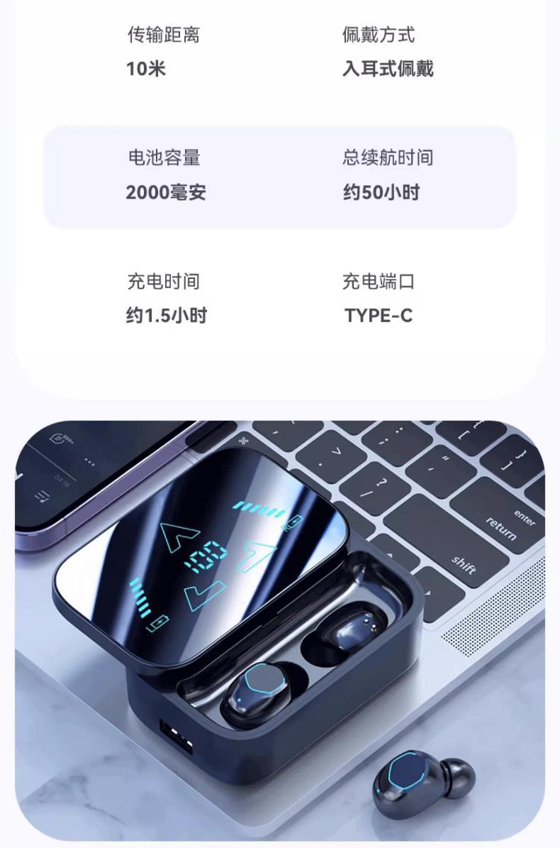 【旗艦版|經典黑】LED三屏數顯+高清通話降噪+無損HiFi音質+可給手機充電