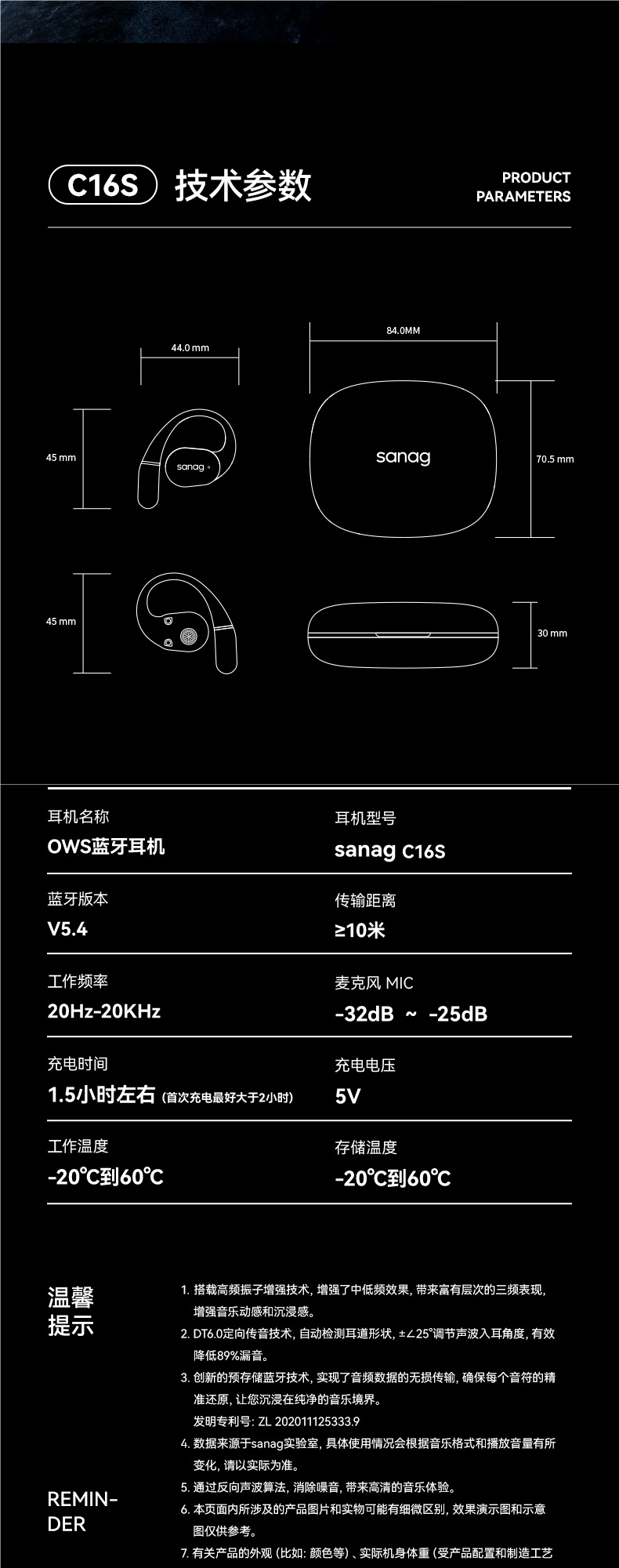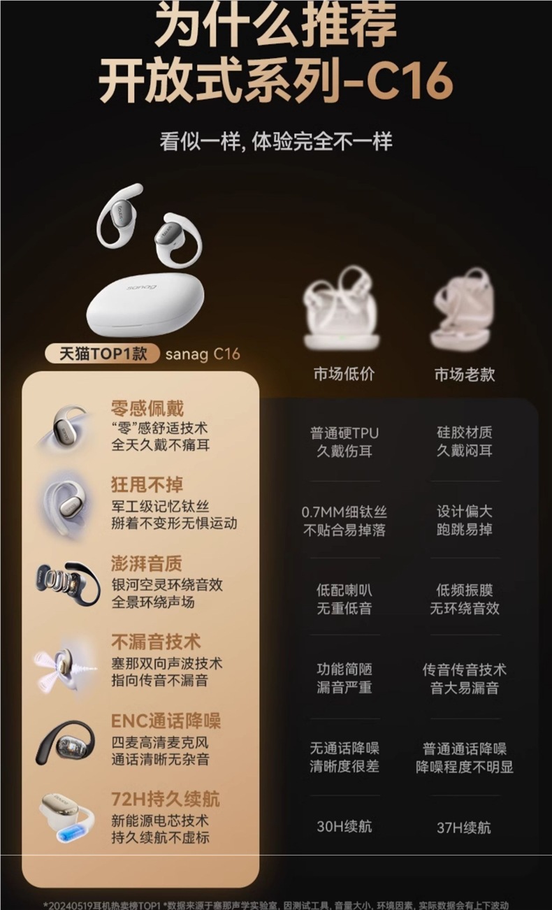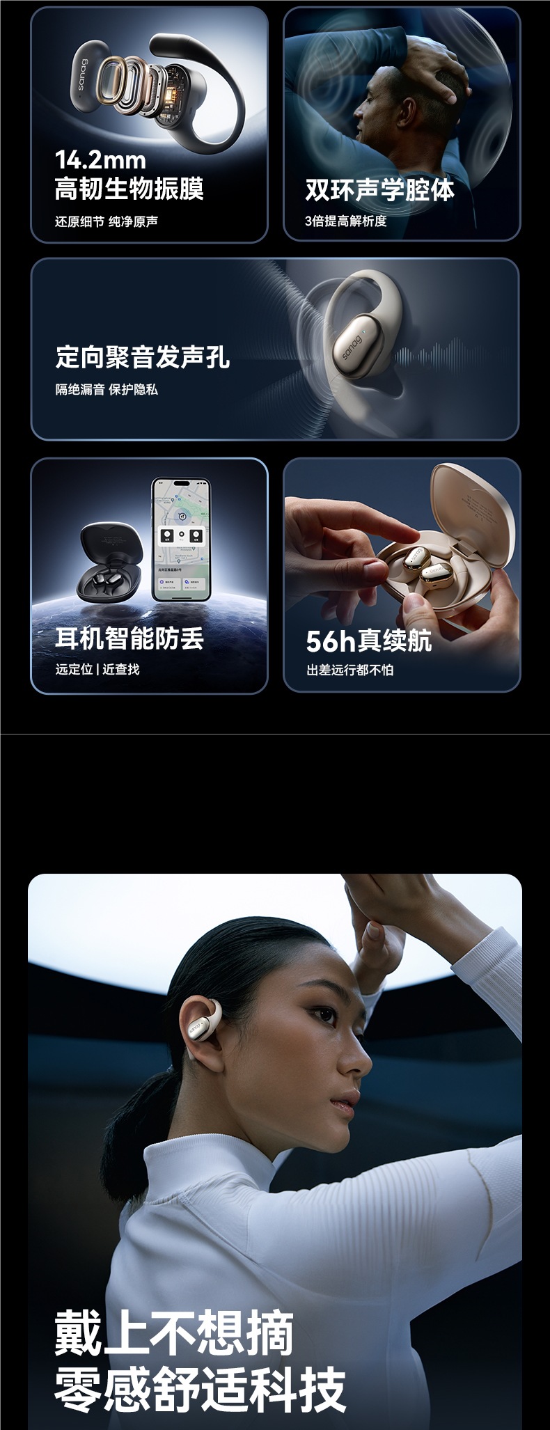 sanag塞納c16S耳掛式藍牙耳機騎行掛耳開放超長續航2024新款