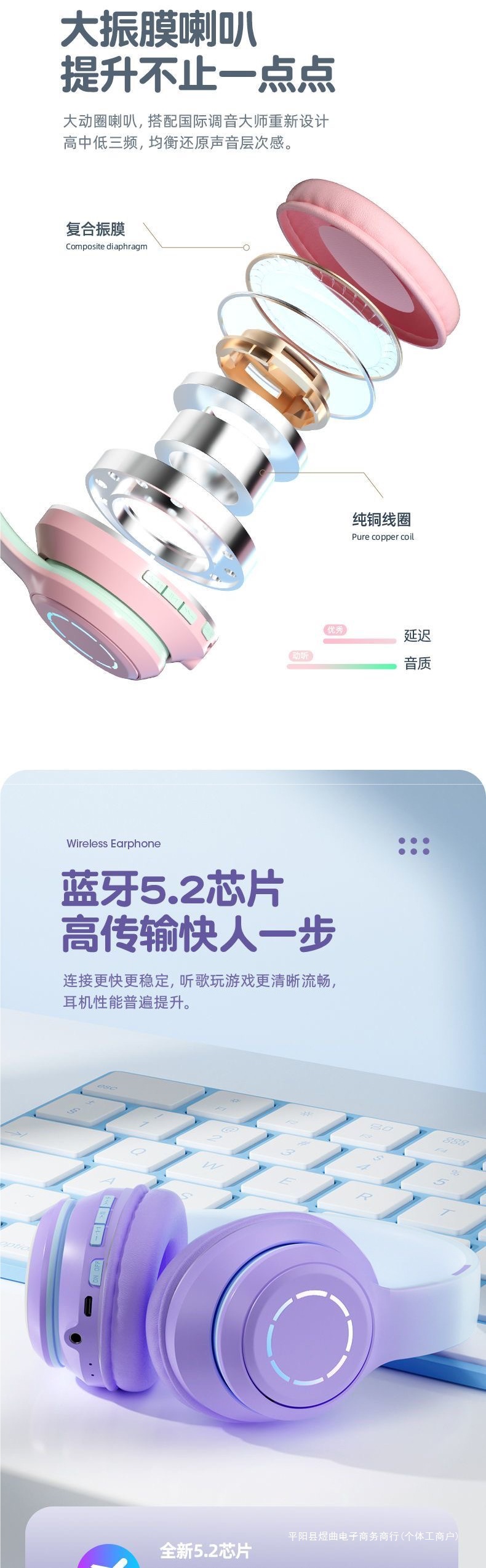【升級版 髮光藍】藍牙5.2*不延遲 【升級版 髮光粉】藍牙5.2*不延遲 【升級版 髮光紫】藍牙5