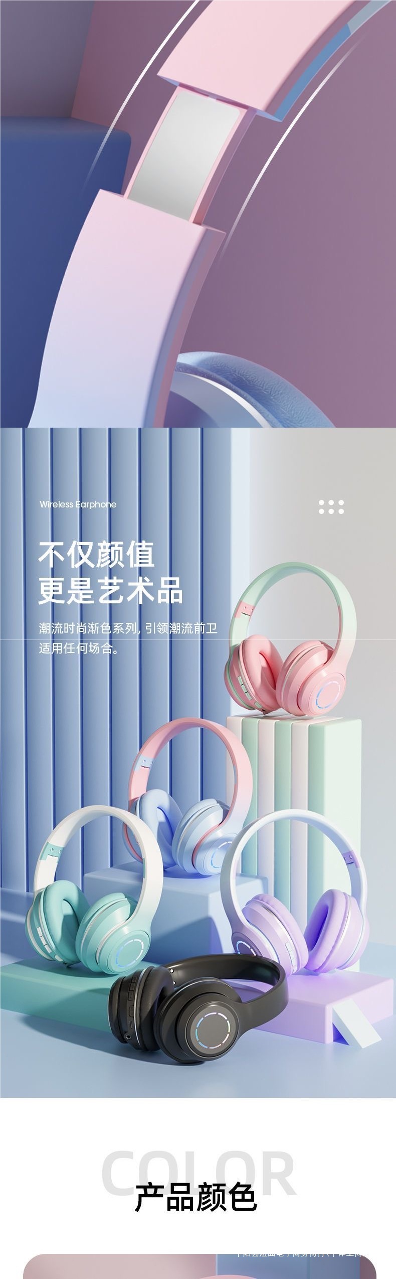 頭戴式藍牙耳機2024新款高顔值女生無線耳罩式耳麥學生黨拍照聽歌
