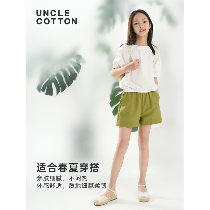 棉叔叔女童中大童2025夏季新款休閒短褲寬松顯瘦舒適薄款時尚短褲