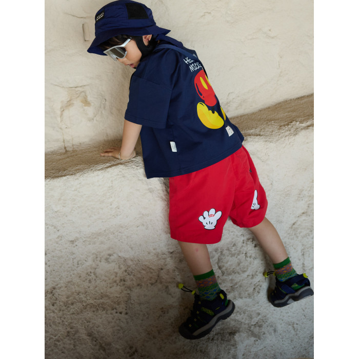 HUANHUSHENG兒童手掌短褲夏季卡通可愛紅休閒褲幼兒園親子裝百搭