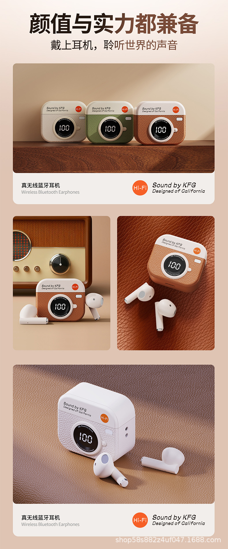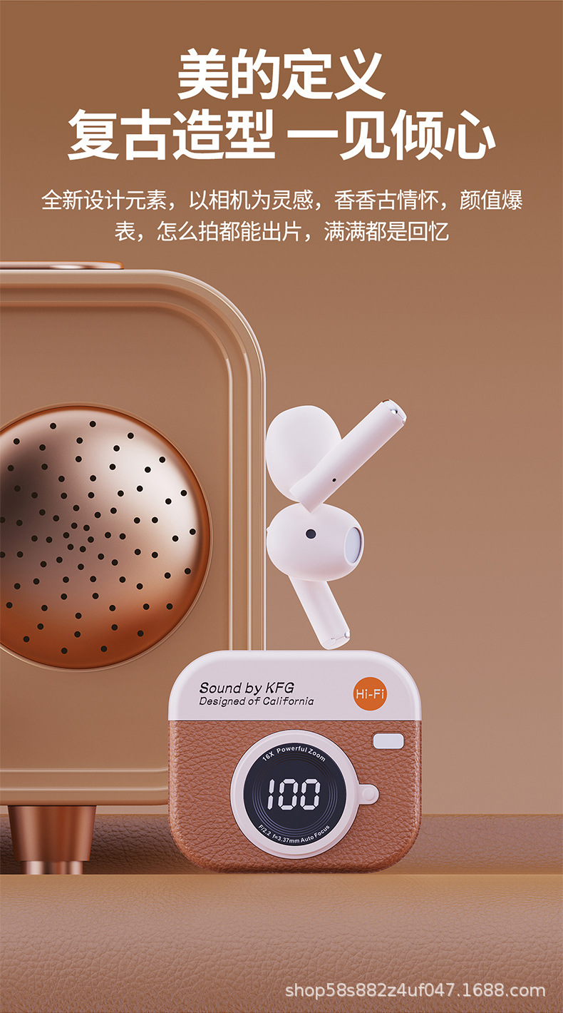 新款Q86復古相機無線藍牙耳機降噪入耳式長續航迷你小巧