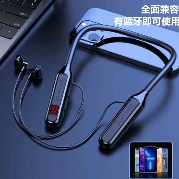 掛脖式無線藍牙耳機帶數顯功能大容量半入耳運動立體聲掛脖式耳機