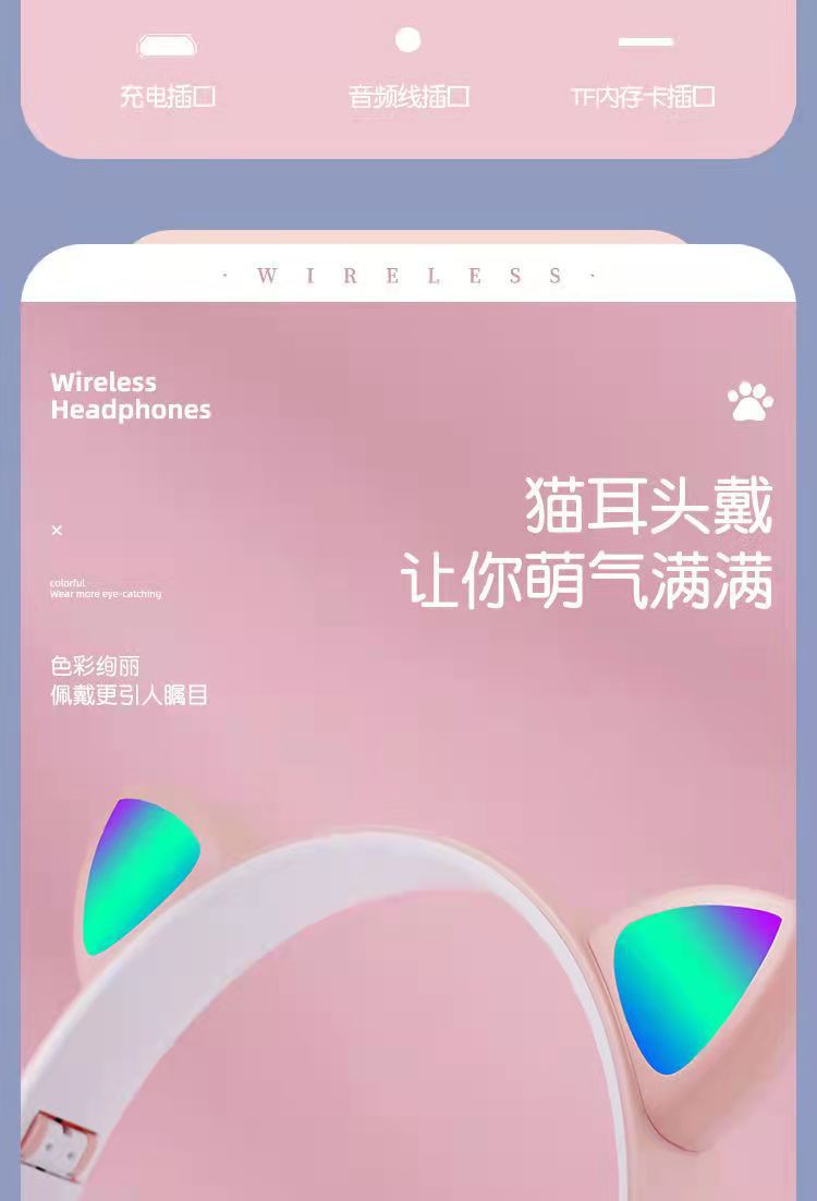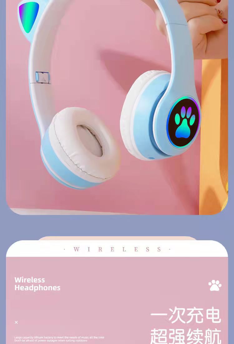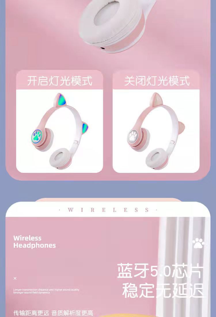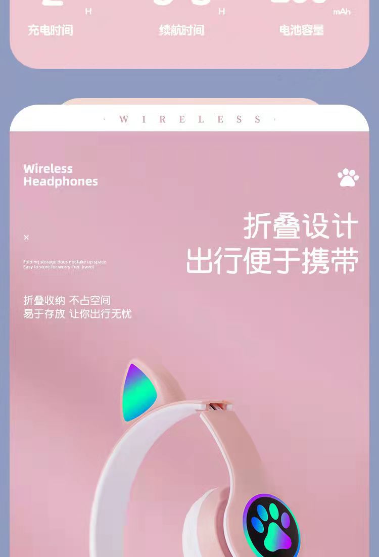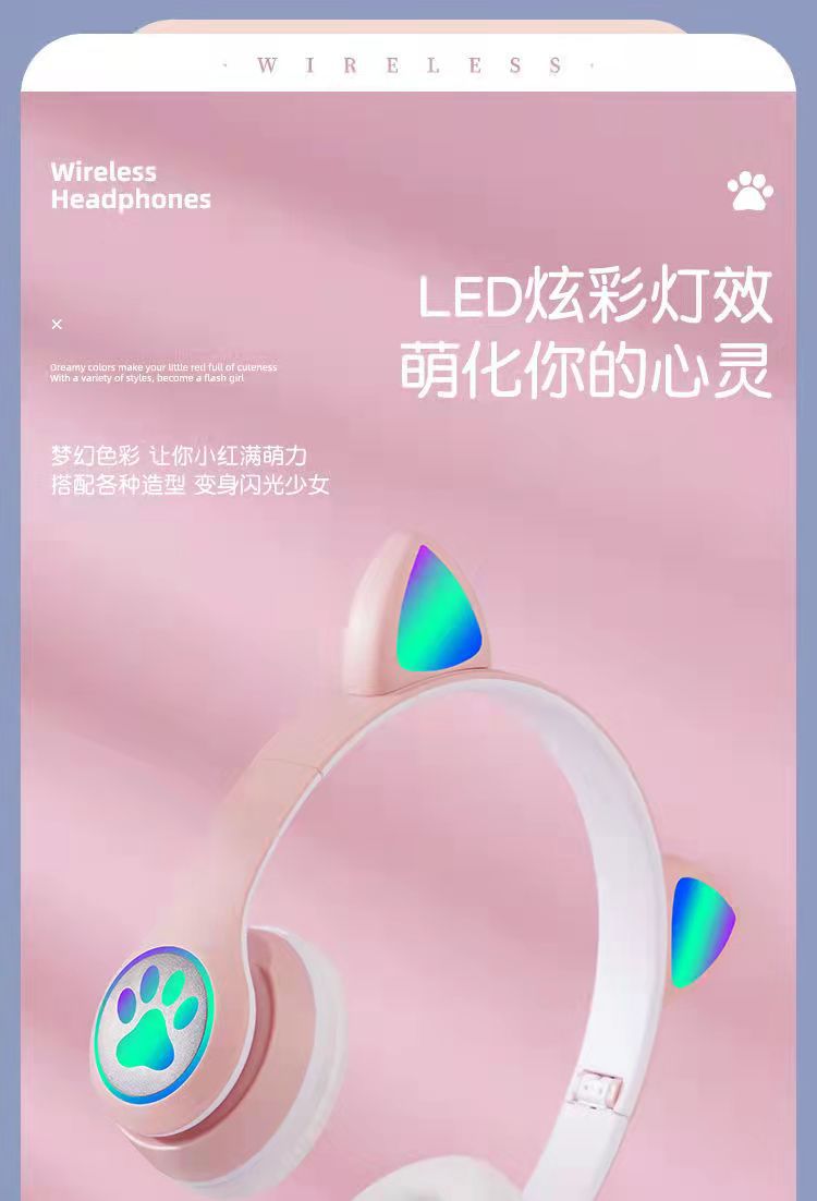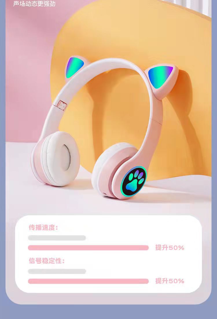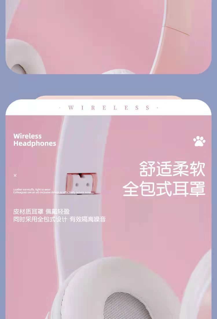 MZ-023貓耳朵頭戴式藍牙耳機無線運動折曡發光遊戯藍牙耳機