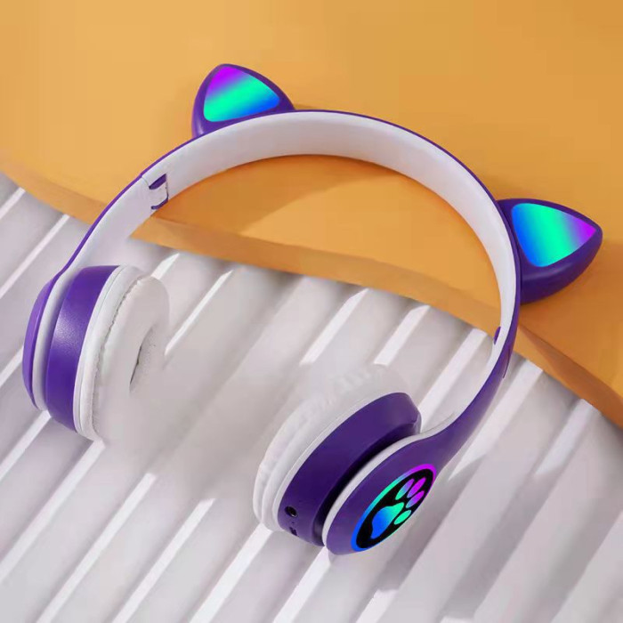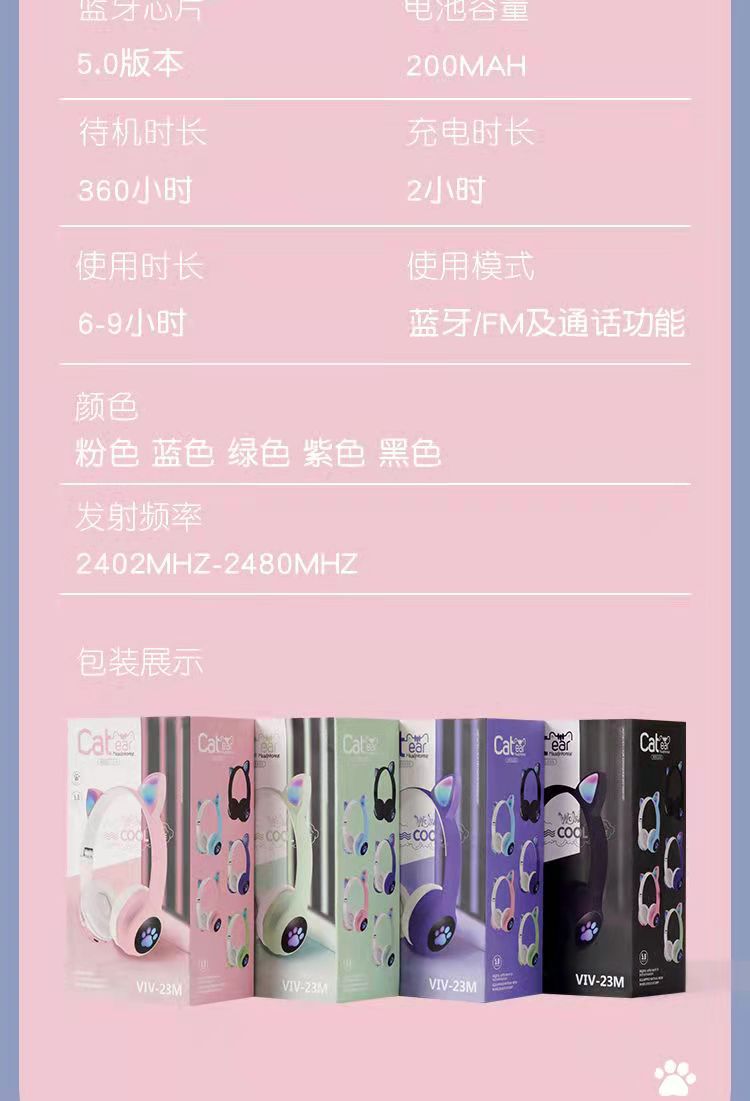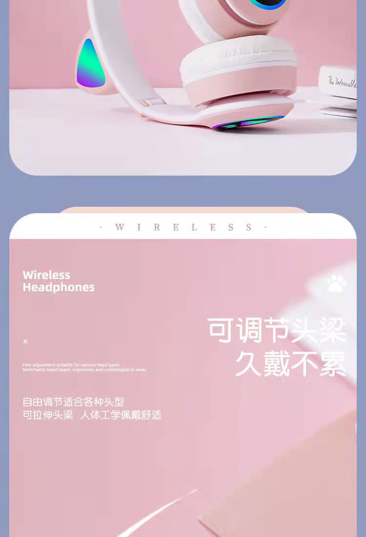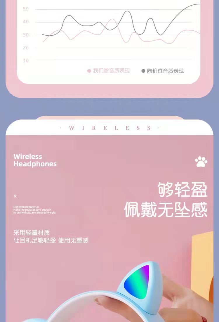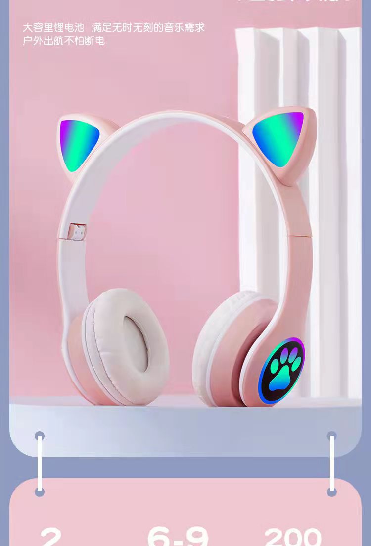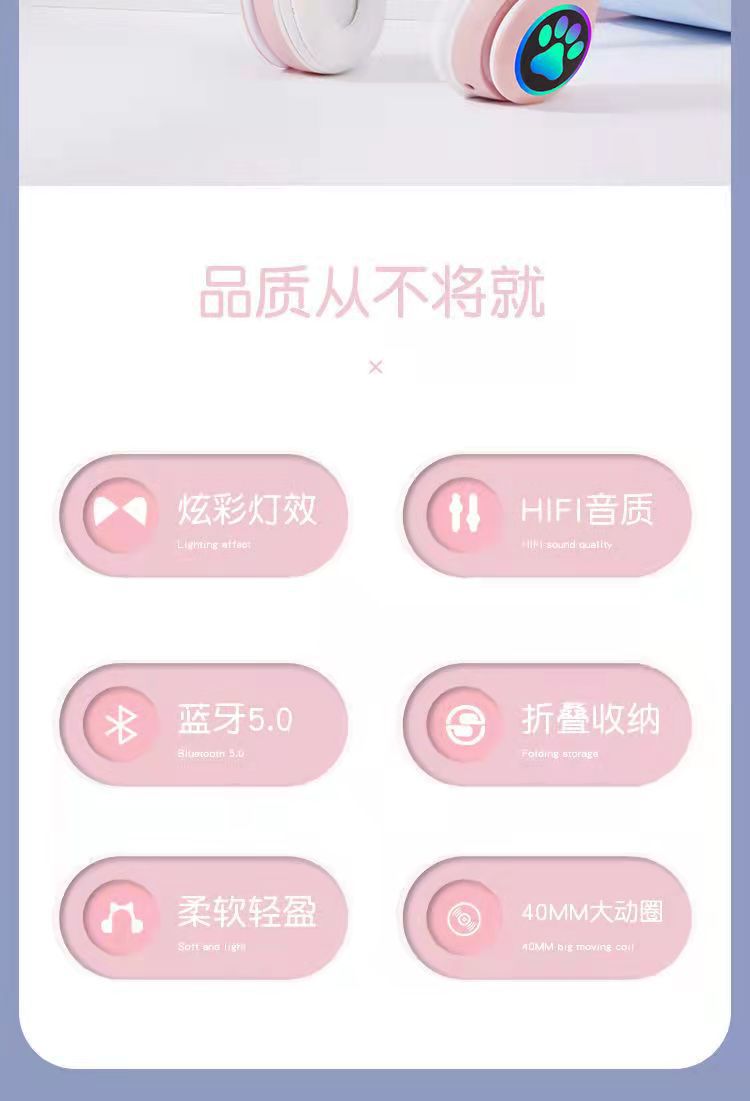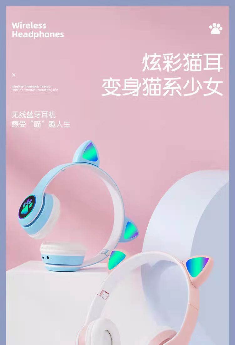 MZ-023貓耳朵頭戴式藍牙耳機無線運動折曡發光遊戯藍牙耳機