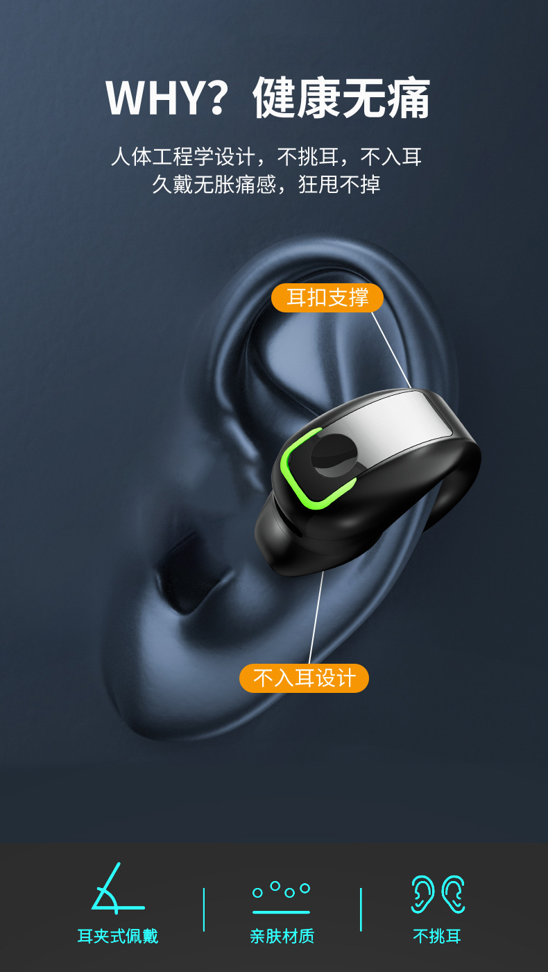 GD28藍牙耳機新款夾耳式不入耳氣傳導禮品單耳輕巧商務運動骨傳導