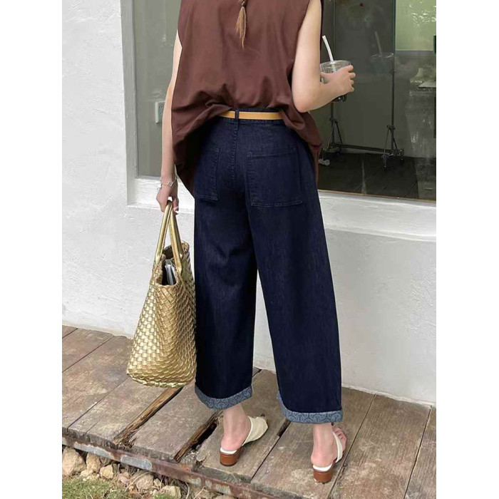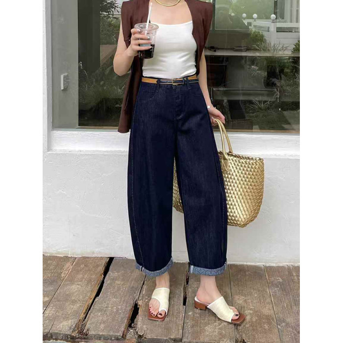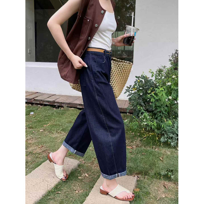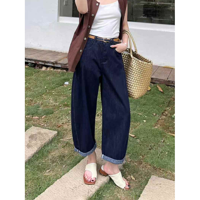 爆犀牛2025夏季新款寬松小個子彎刀褲女牛仔褲顯瘦直筒九分濶腿褲