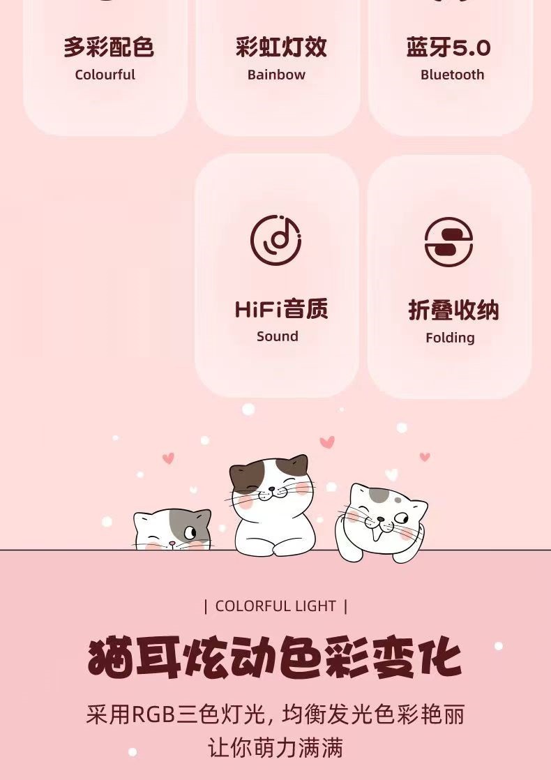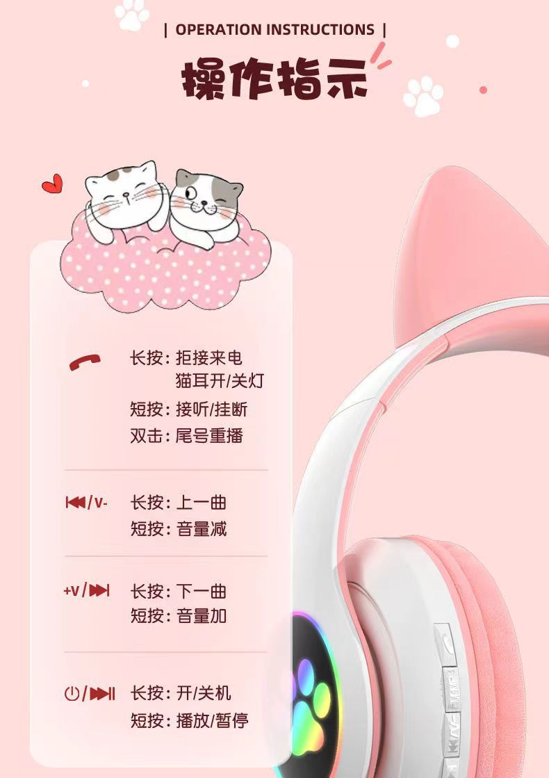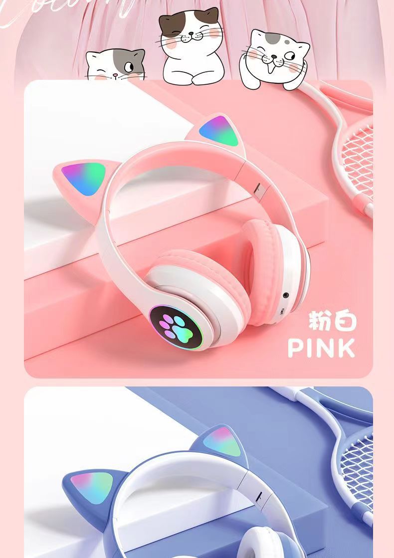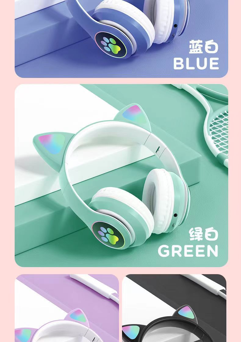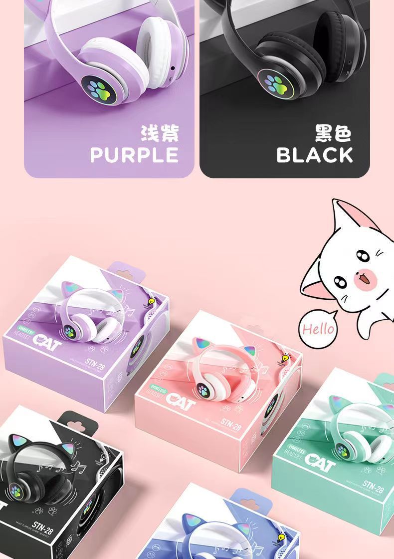 無線耳麥STN28爆款頭戴式發光貓耳無線藍牙耳機頭戴