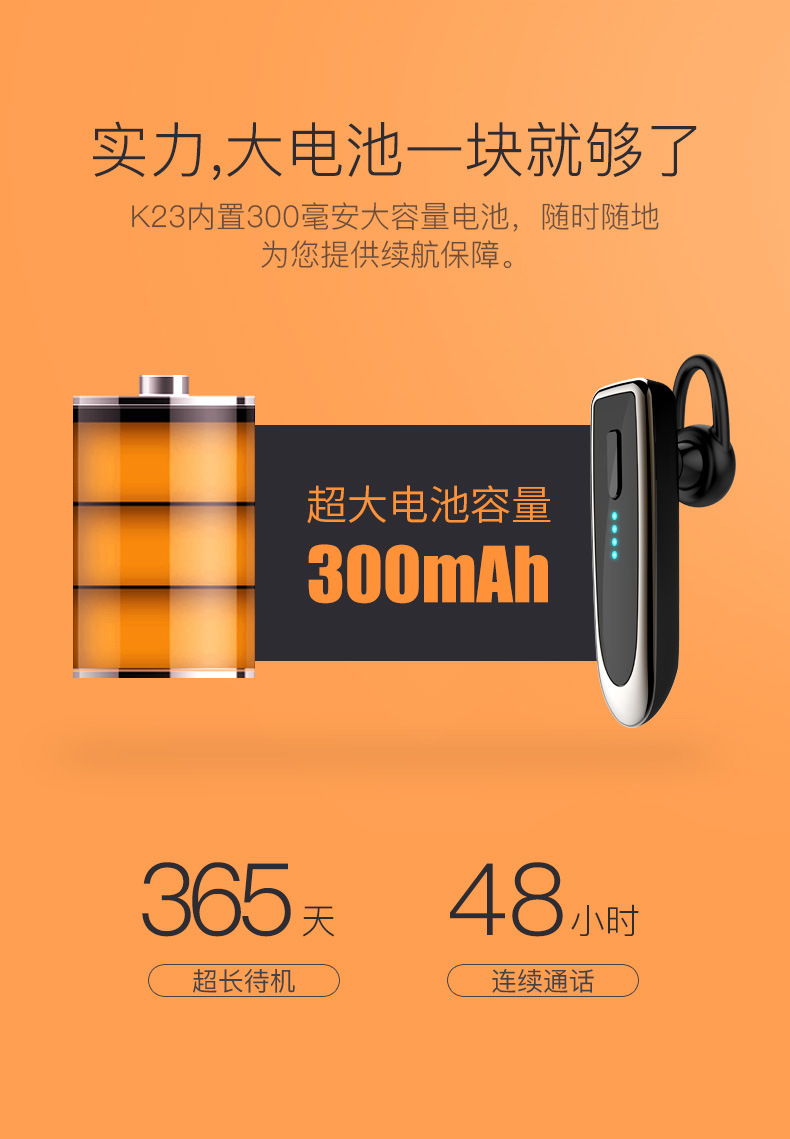 爆款k23無線藍牙耳機耳塞入耳式超長待機通用款防汗帶電顯