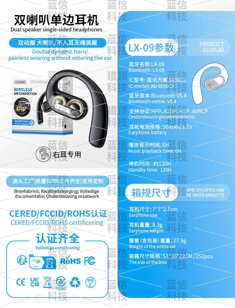 LX-09至尊黑 (大動圈雙喇叭+智能觸控+藍牙5.4+高清通話)