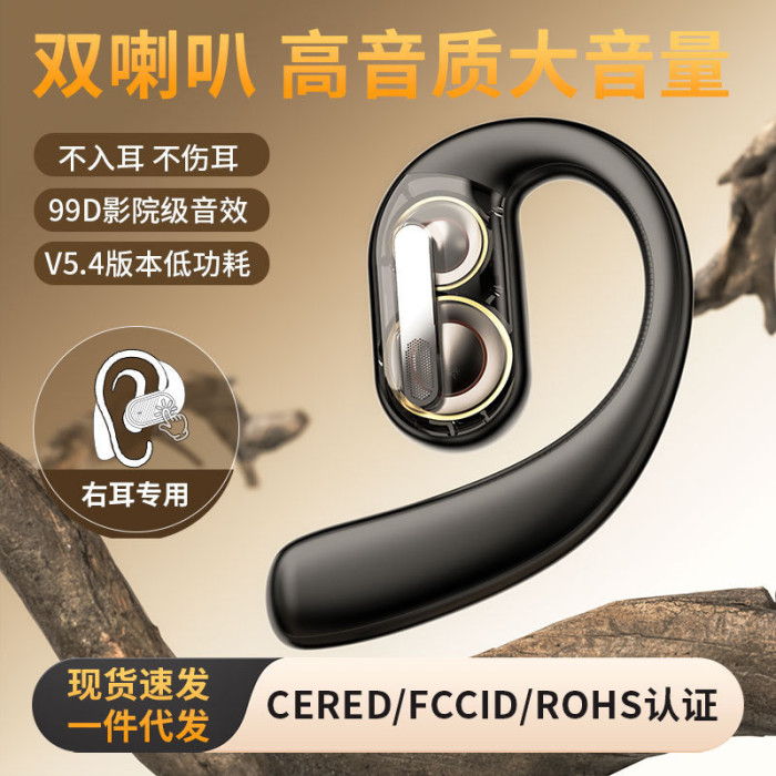單邊雙喇叭掛耳式藍牙耳機不入耳高清通話商務運動藍牙耳機大音量