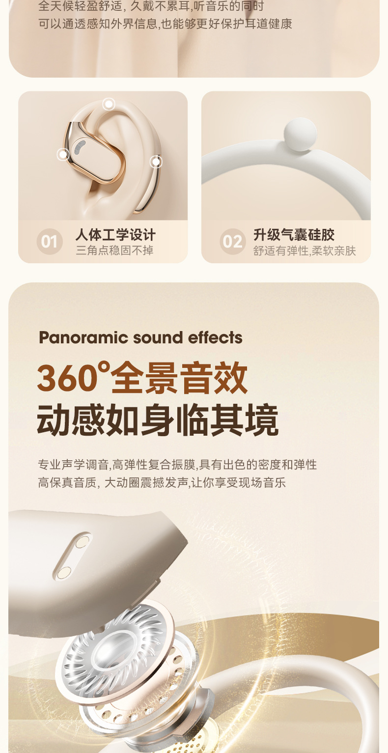 新款M76開放式無線藍牙耳機骨傳導防水掛耳式降噪耳機