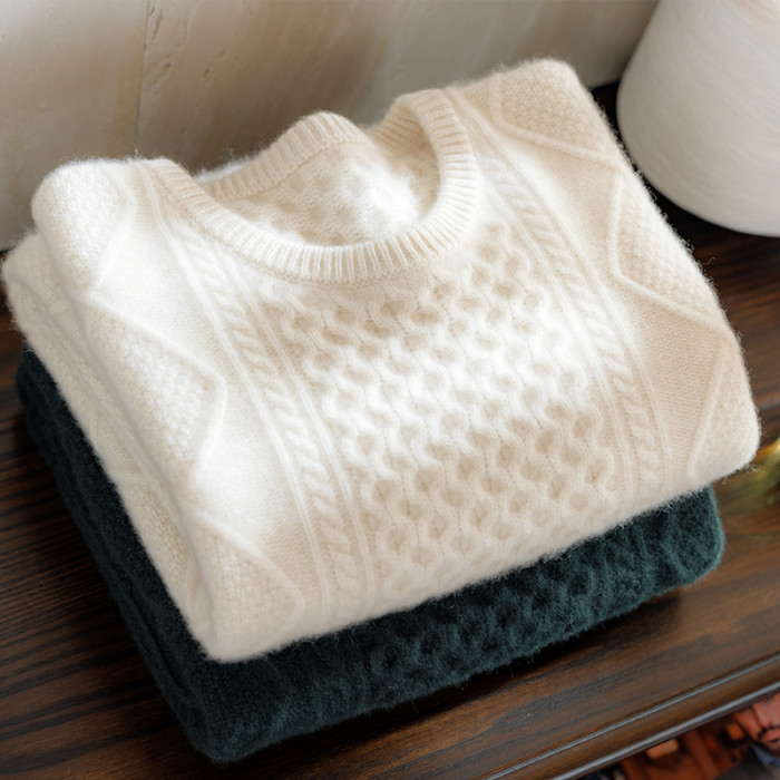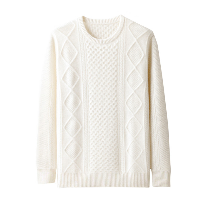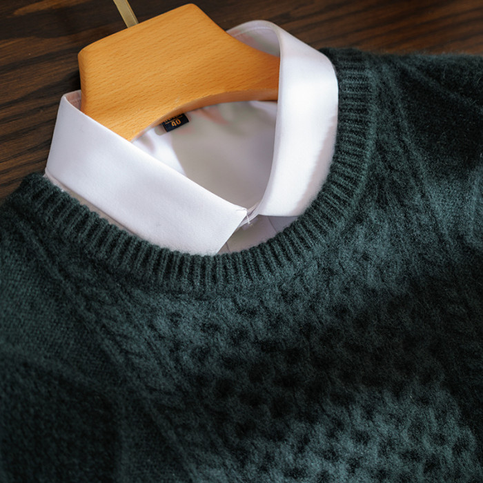 三股加厚羊絨衫男100%純山羊絨套頭扭花針織打底衫百搭保暖毛衣潮