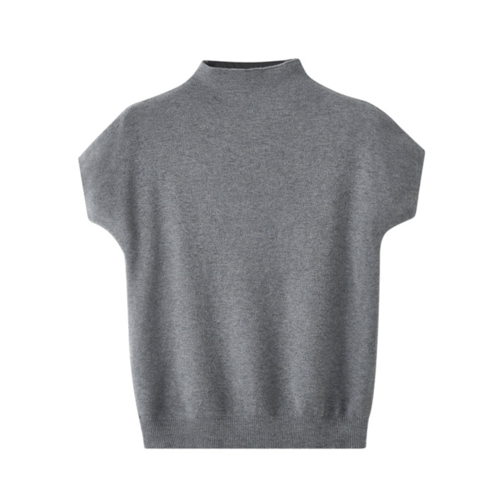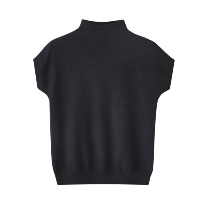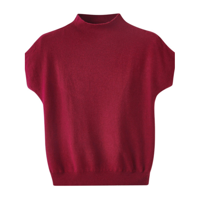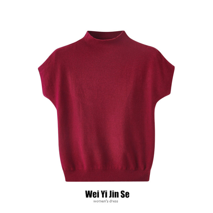 早秋新款女上衣半高領修身針織打底衫短款簡約百搭飛飛袖毛衣內搭