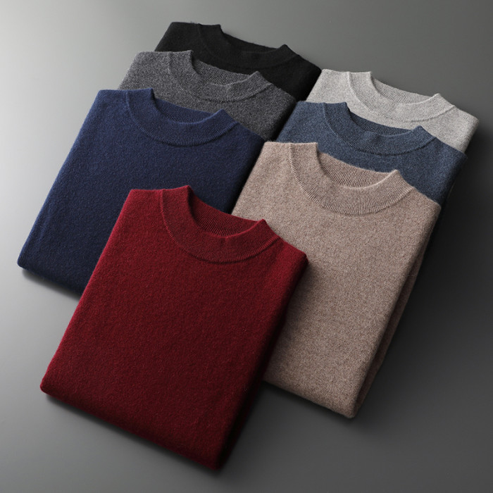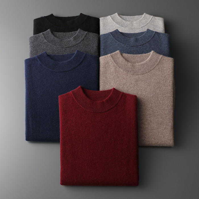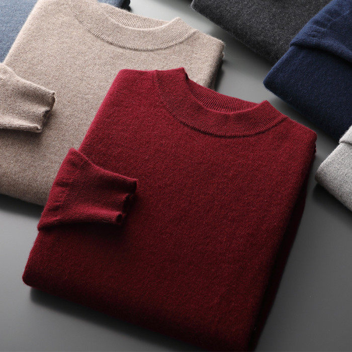 秋冬季100%純山羊絨衫男半高領輕奢毛衣針織打底衫純色休閒羊毛衫
