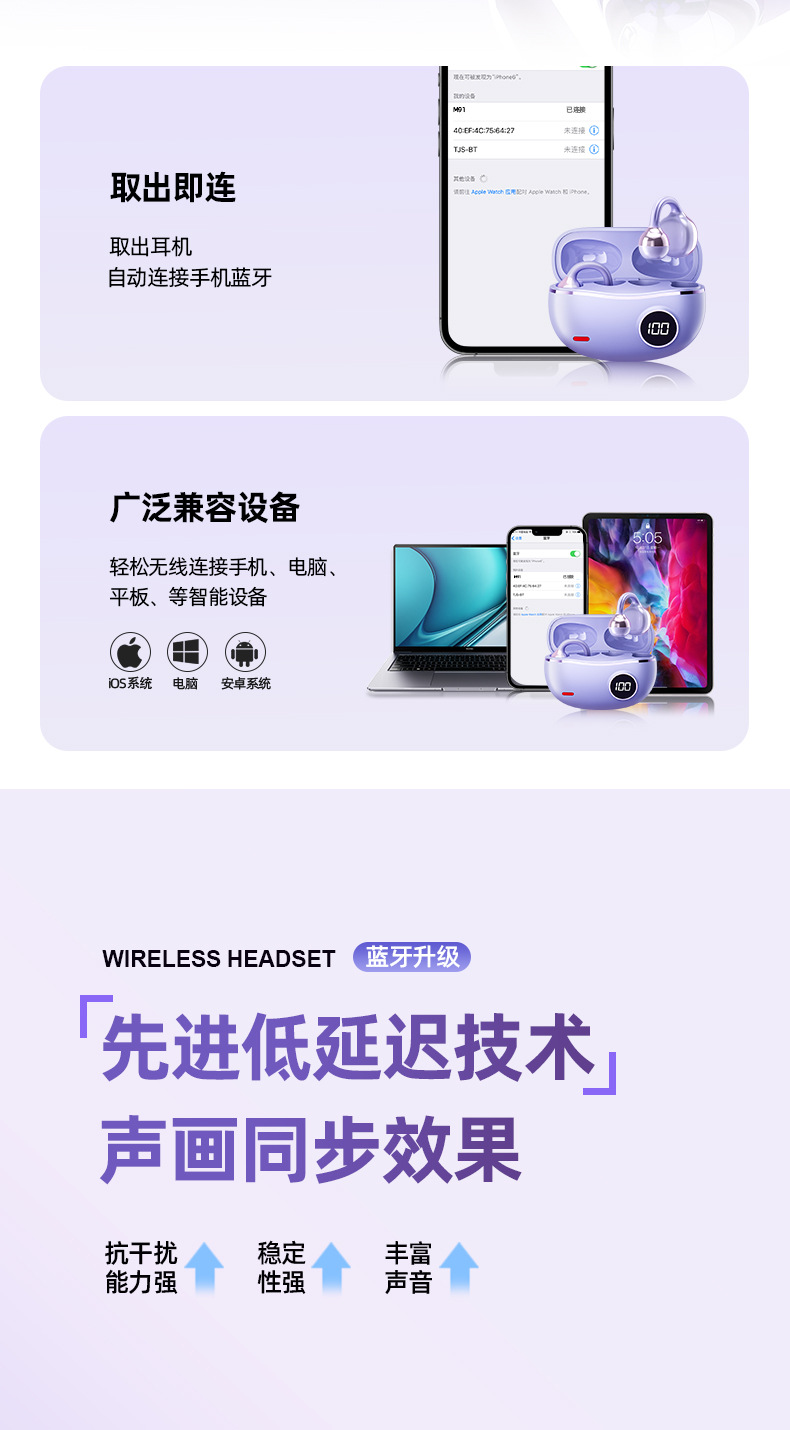 抖音新款T2小椰球藍牙耳機開放式不入耳運動耳機批