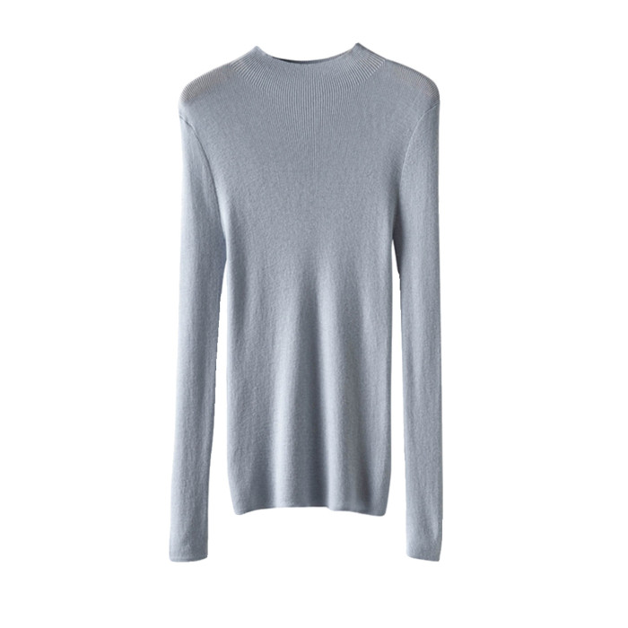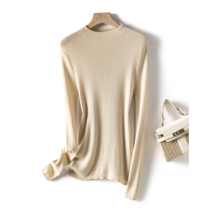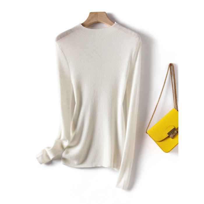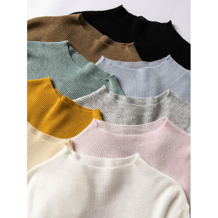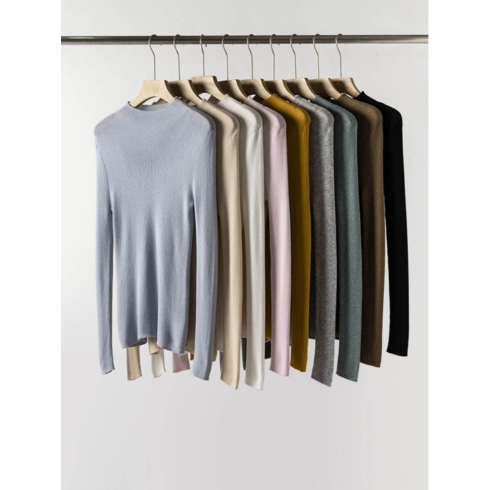 希區向簡約氛圍感基礎針織衫半高領內搭打底衫套頭針織上衣早春女