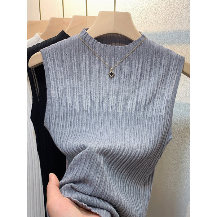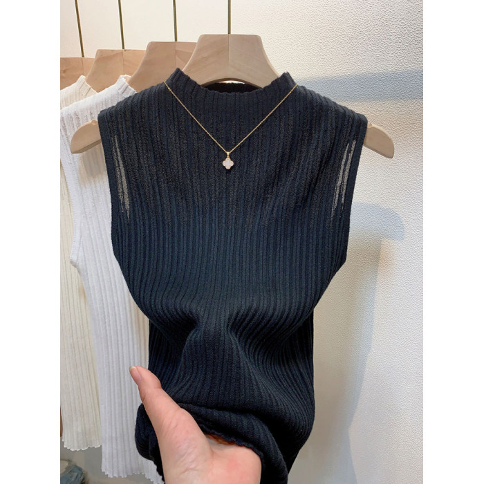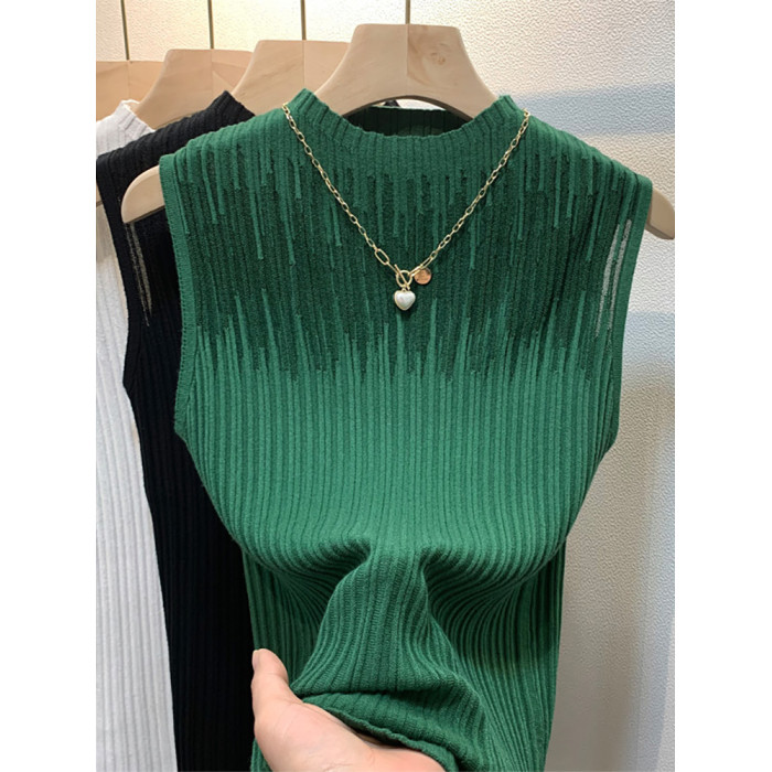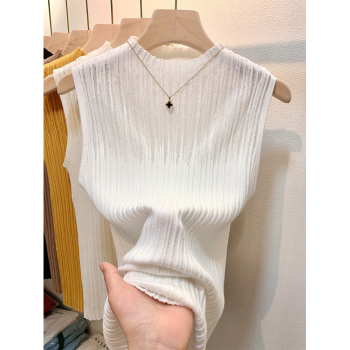 潮牌2025夏季無袖套頭針織打底衫女士胸前鏤空款上衣修身內搭背心