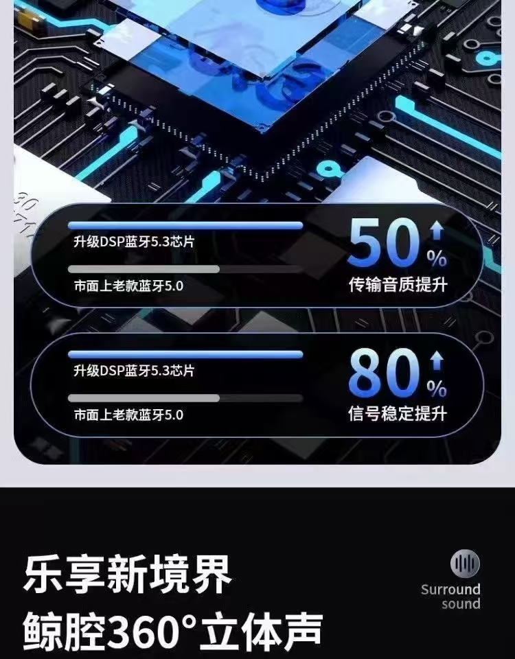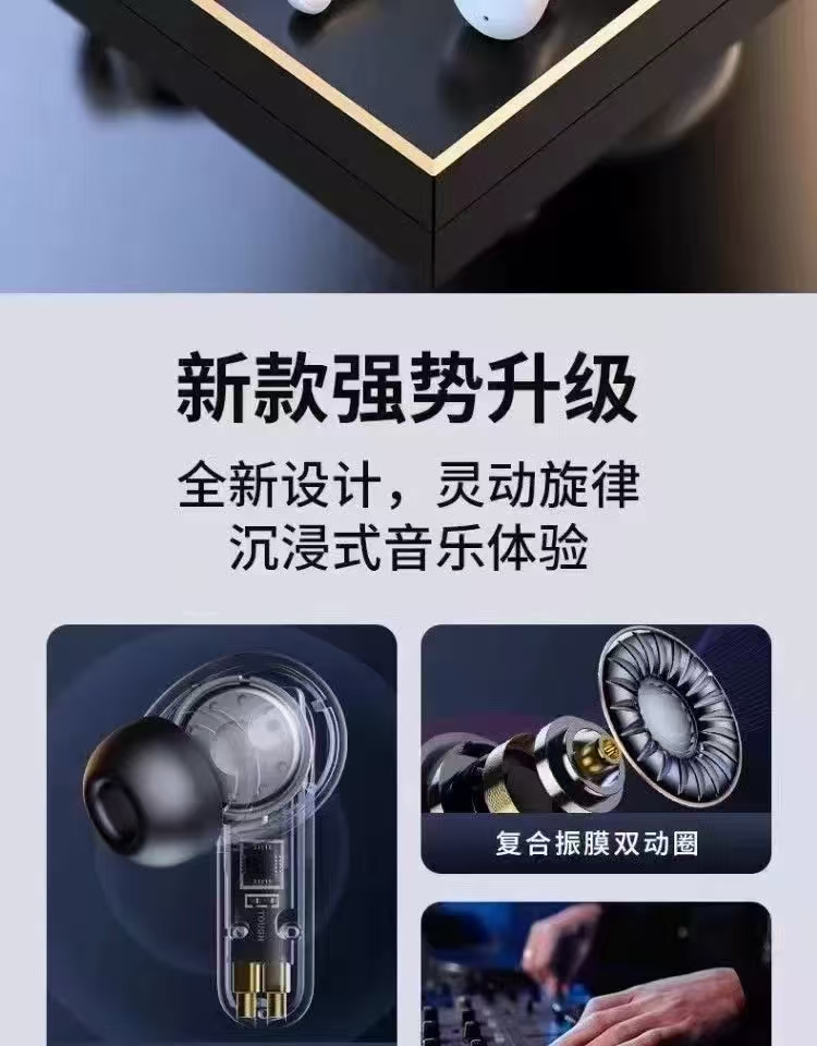藍牙耳機2024新款智能無線降噪高品質入耳式顯示電量超長續航通用