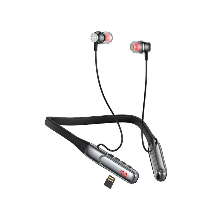 袋裝+線-LY-14 數顯金屬掛脖耳機-黑色