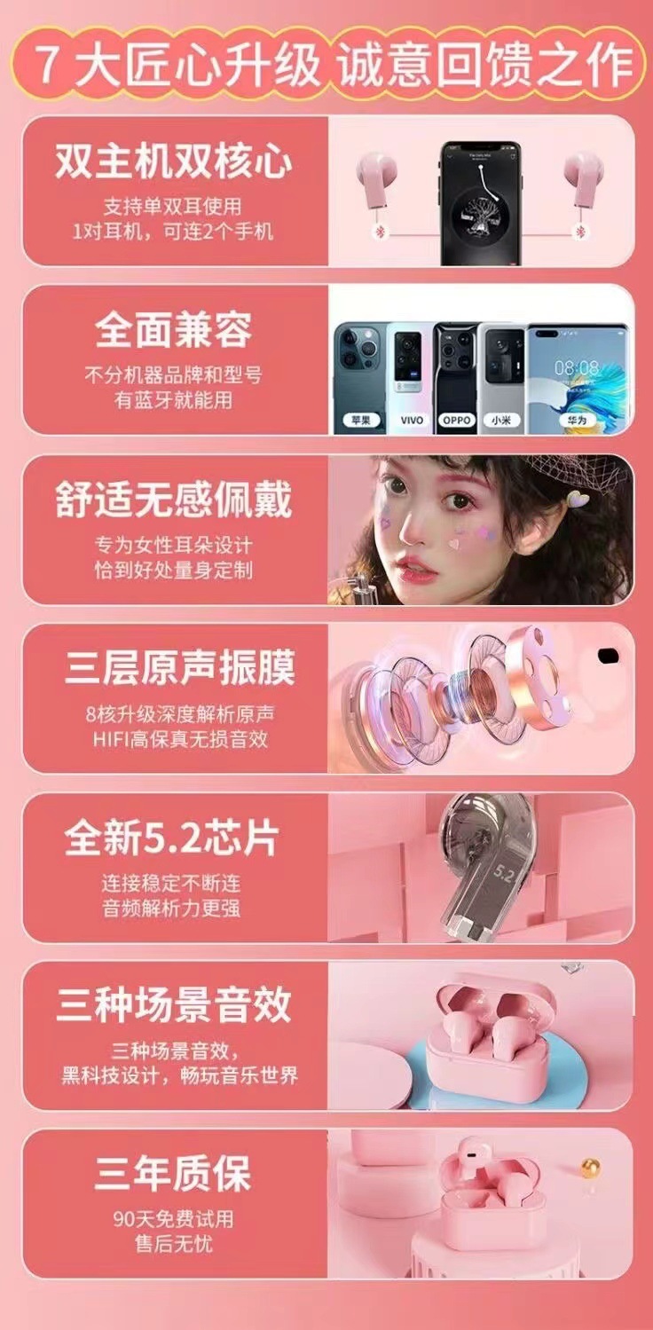 新款pro5s無線入耳式藍牙耳機長續航TWS迷你降噪超長續航運動