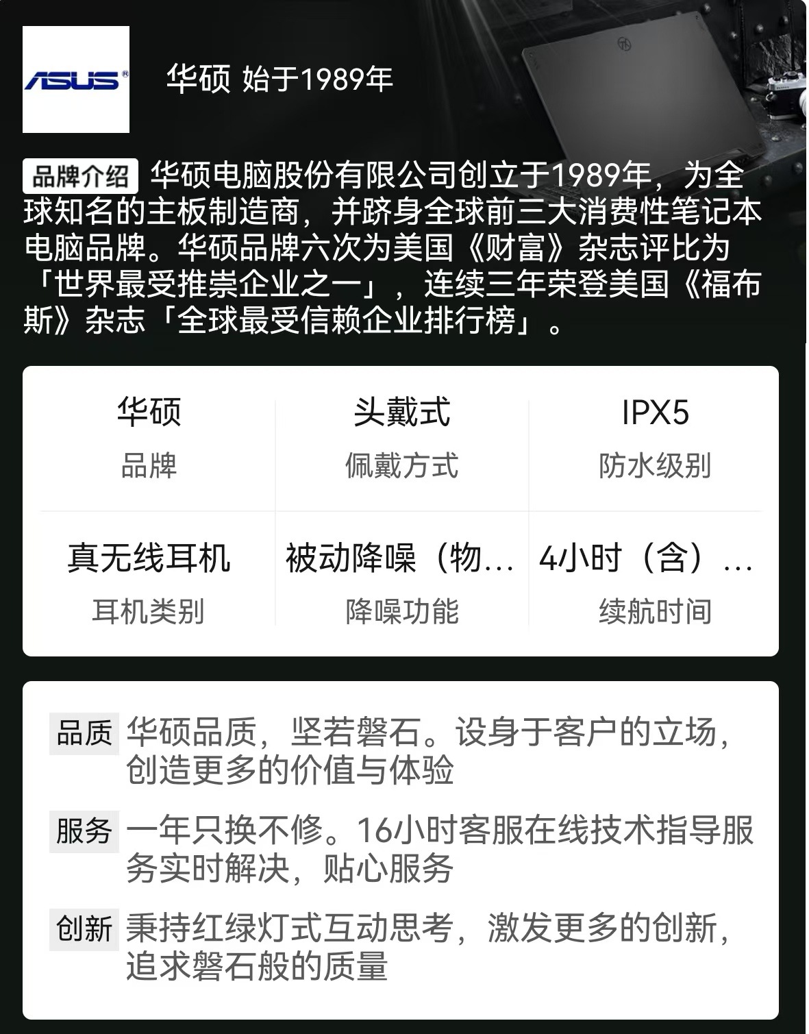 華碩電競遊戯藍牙耳機2025年新款頭戴式高音質ENC降噪超長續航