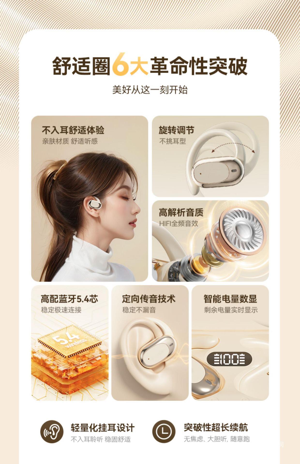 骨傳導藍牙耳機2025新款不入耳無線掛耳運動跑步久戴不痛適用華爲