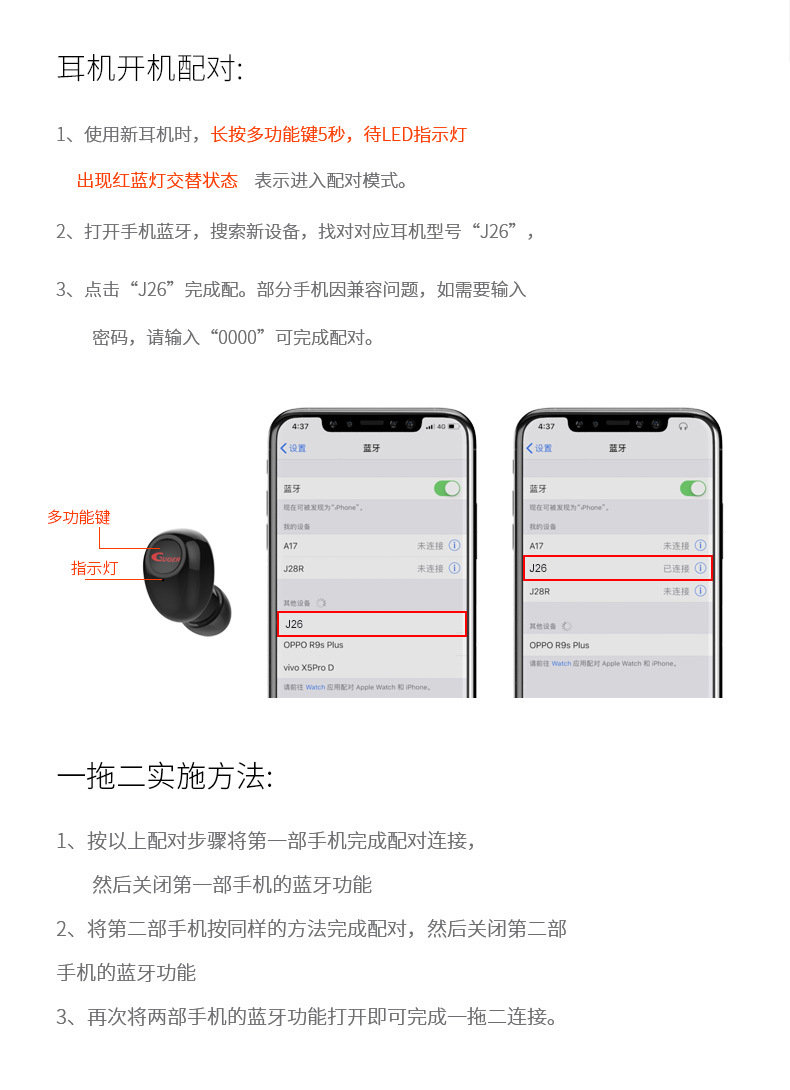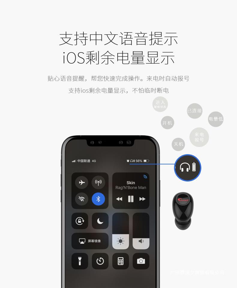 GUOER 藍牙耳機無線單耳入耳式迷你小型適用於蘋果安卓通用華爲蘋
