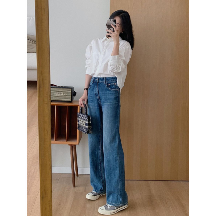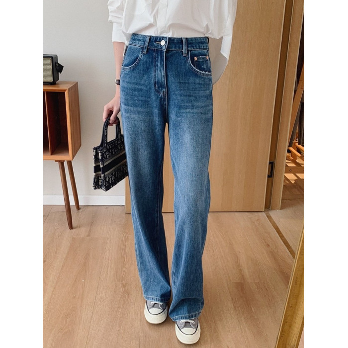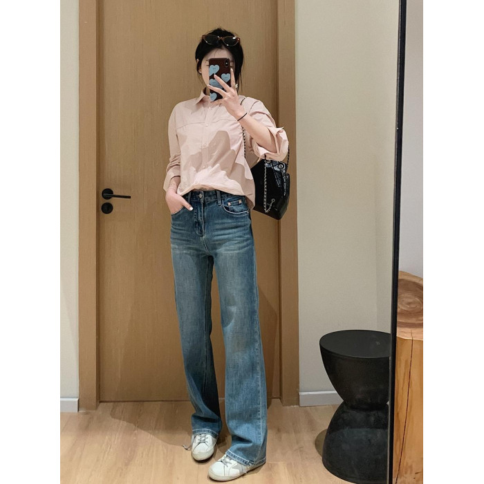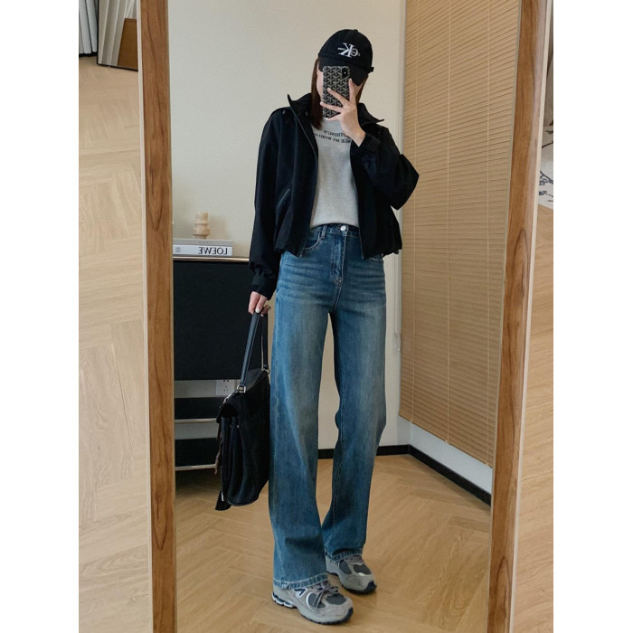 春秋自製四面彈!夏天絲薄窄版直筒女牛仔褲顯瘦顯高垂感百搭長褲