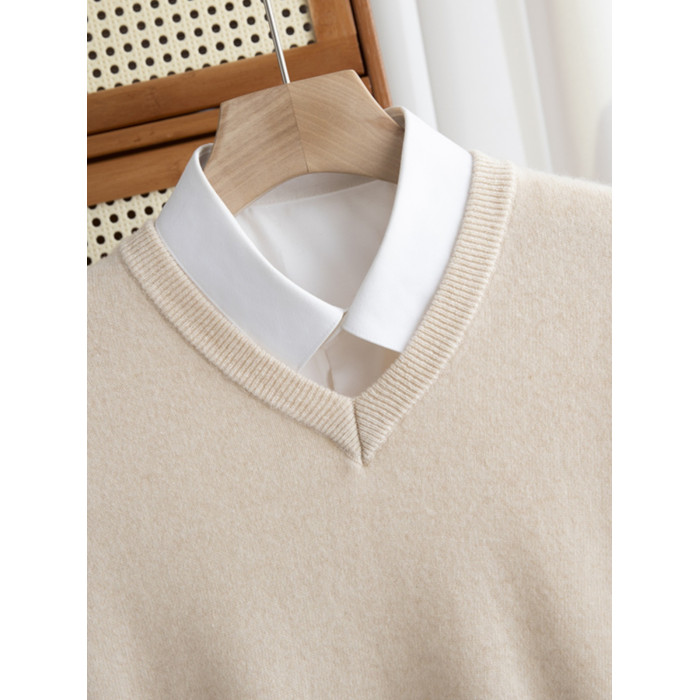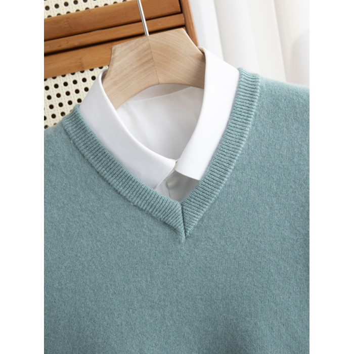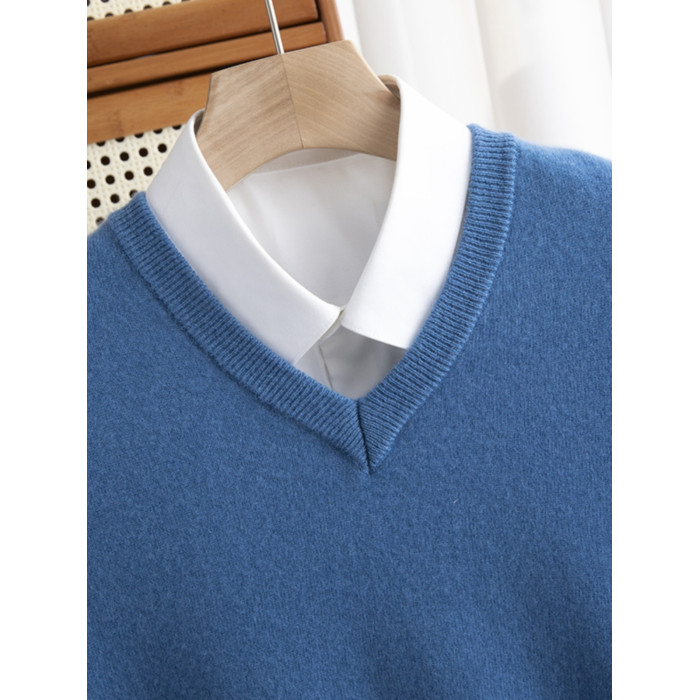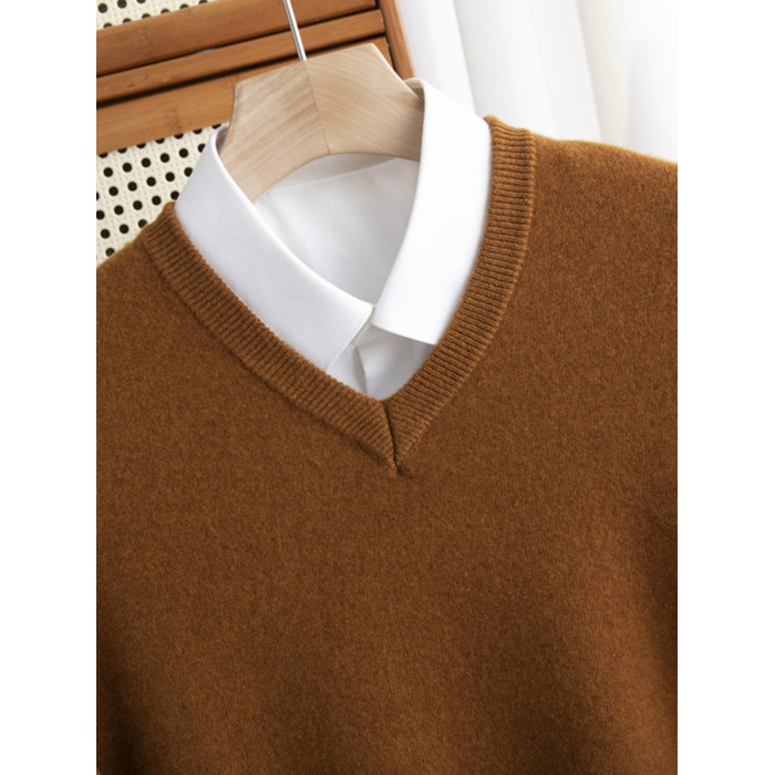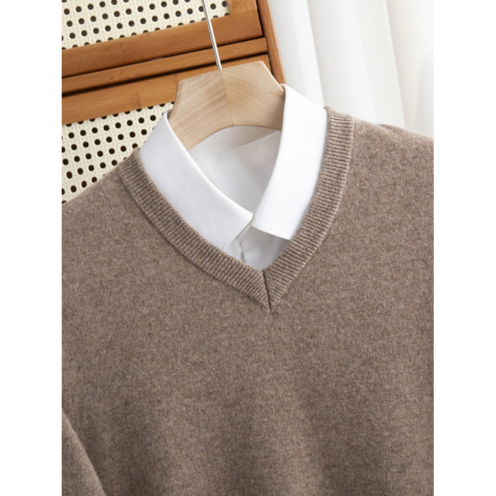 秋冬新款100%純羊毛衫男V領毛衣休閒大碼百搭純色羊絨針織打底衫