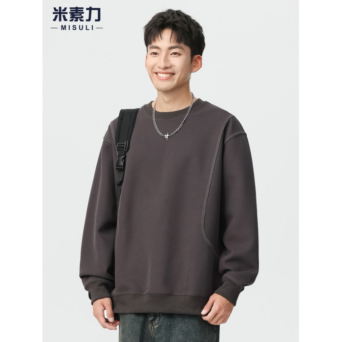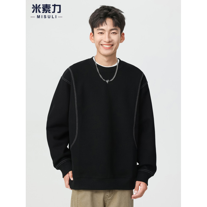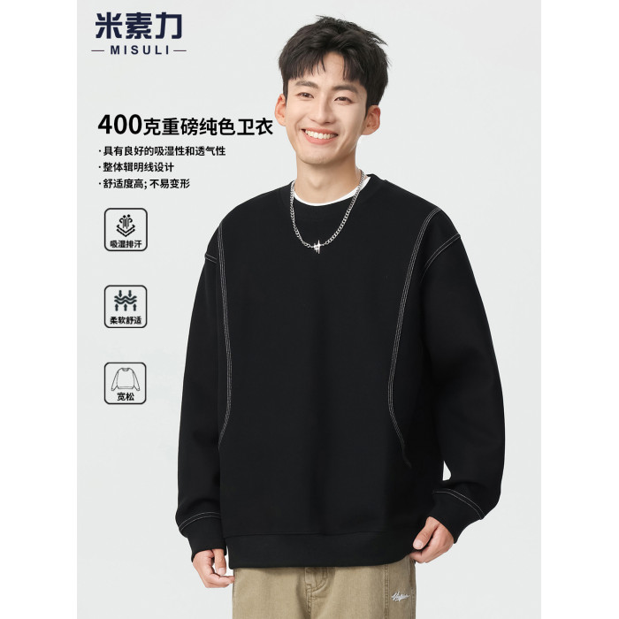 400克重磅休閒百搭純色衛衣男2025新款上衣打底衫美式加絨外套潮