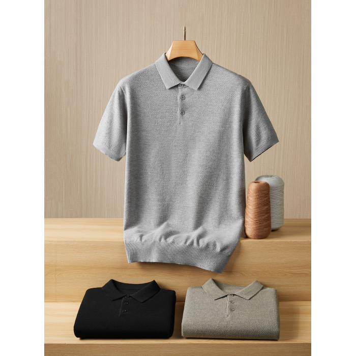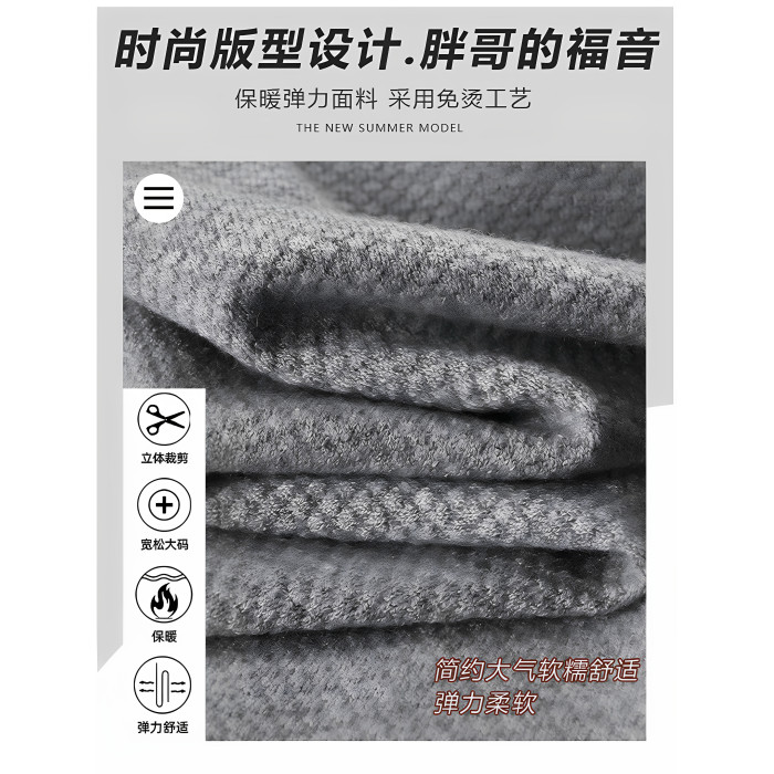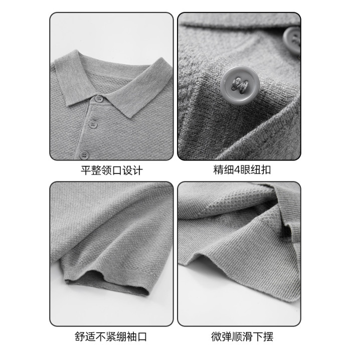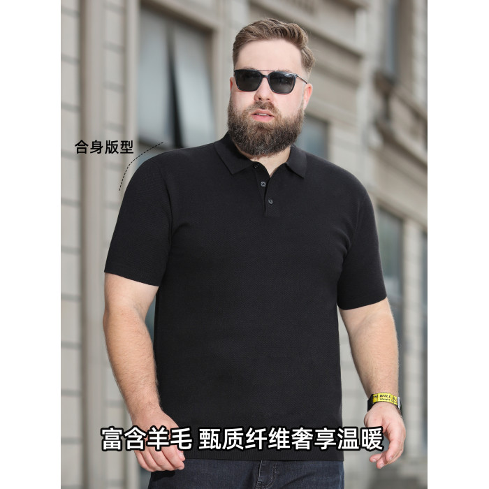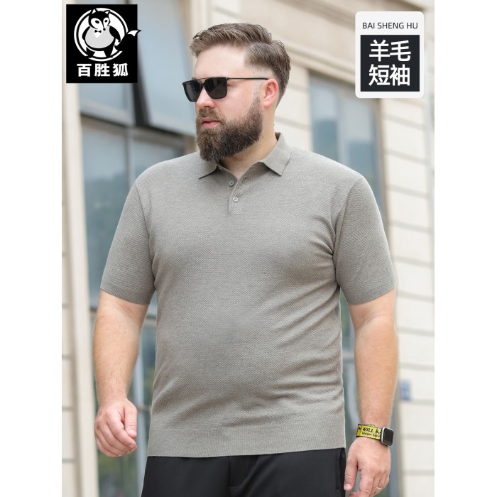 百勝狐大碼男士針織短袖毛衣秋冬季翻領半袖純色羊毛打底衫男胖子