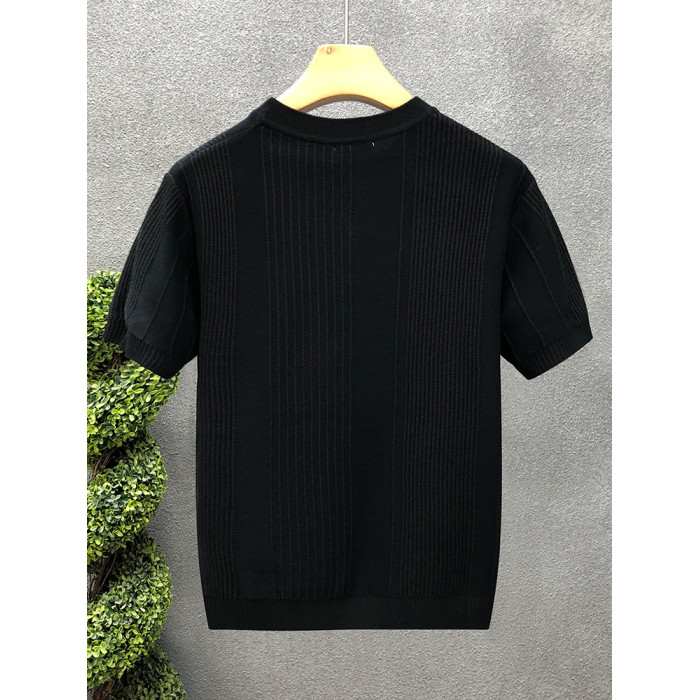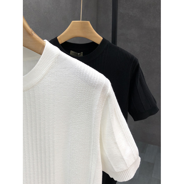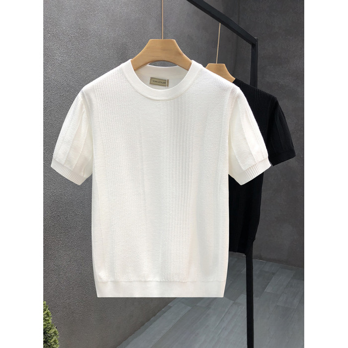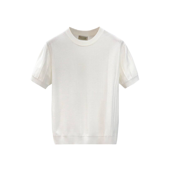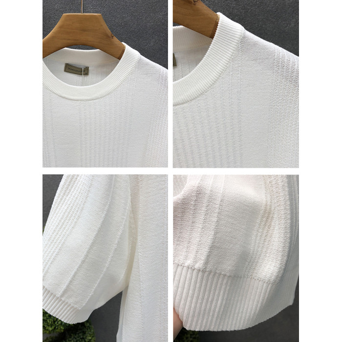 MUSONMU白色提花短袖毛衣男款夏季薄款打底衫男士潮牌半袖針織衫