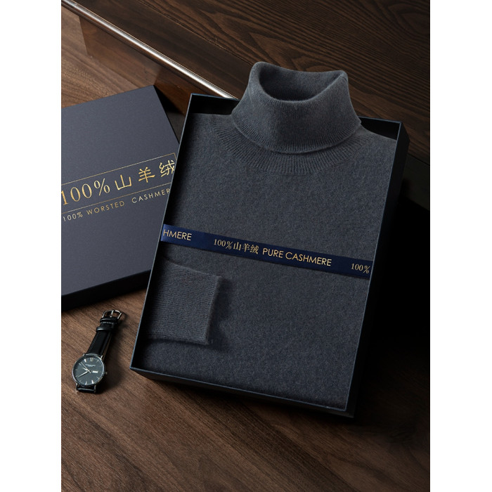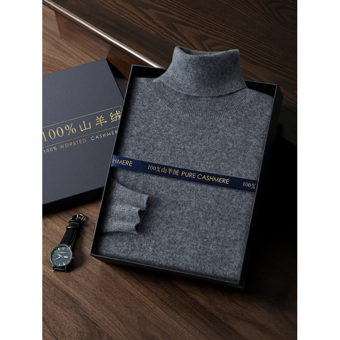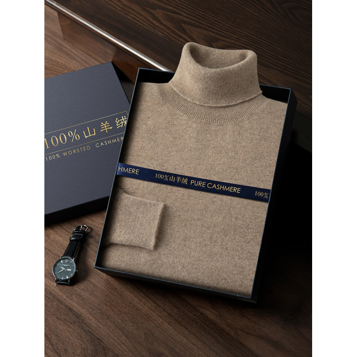 100%純山羊絨衫男高領秋冬季針織打底衫寬松大碼翻領毛衣羊毛衫潮