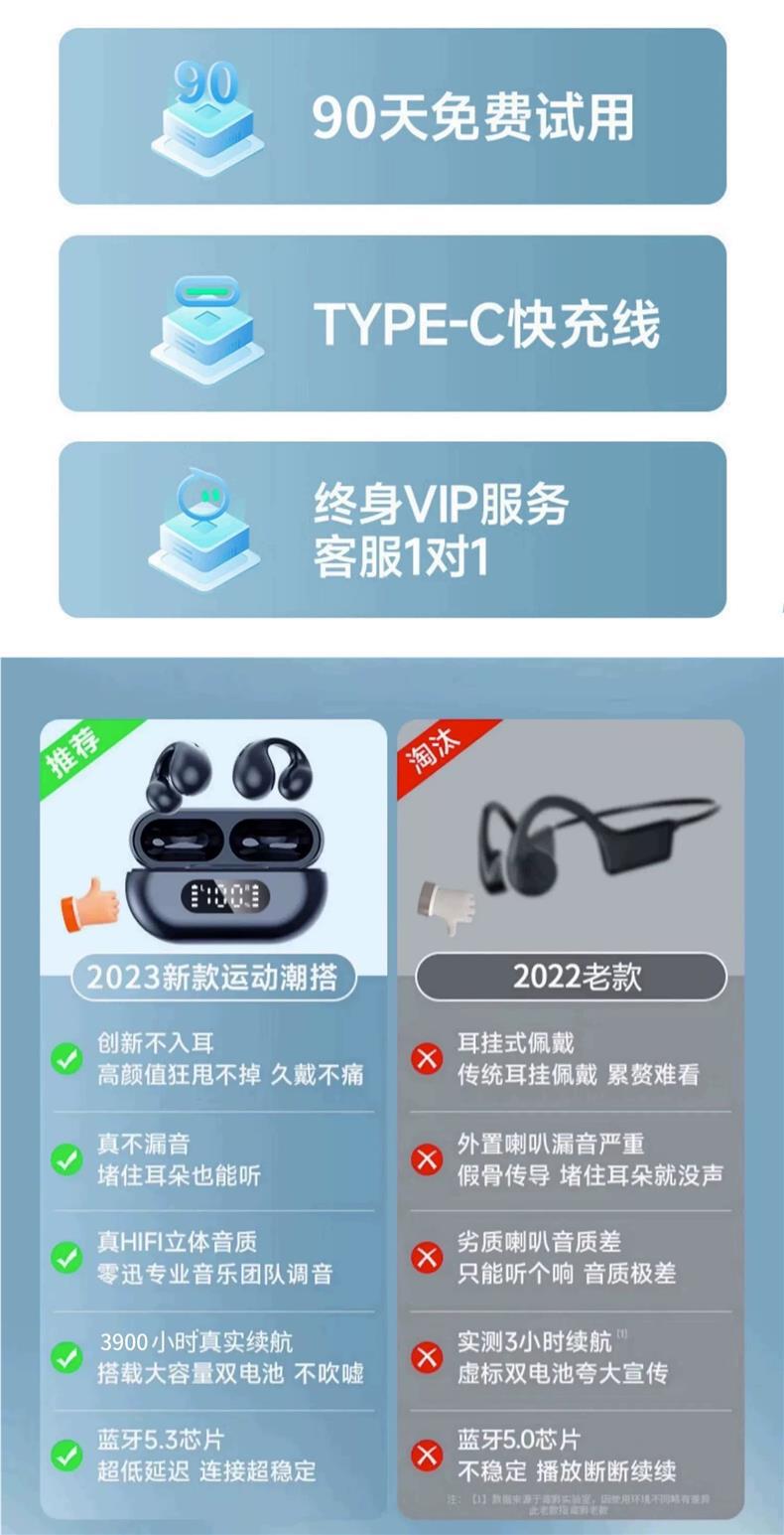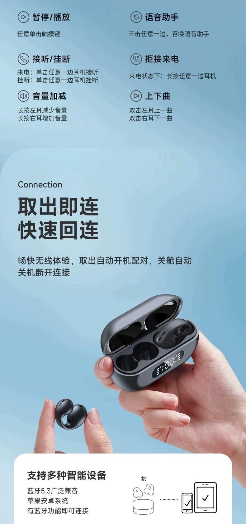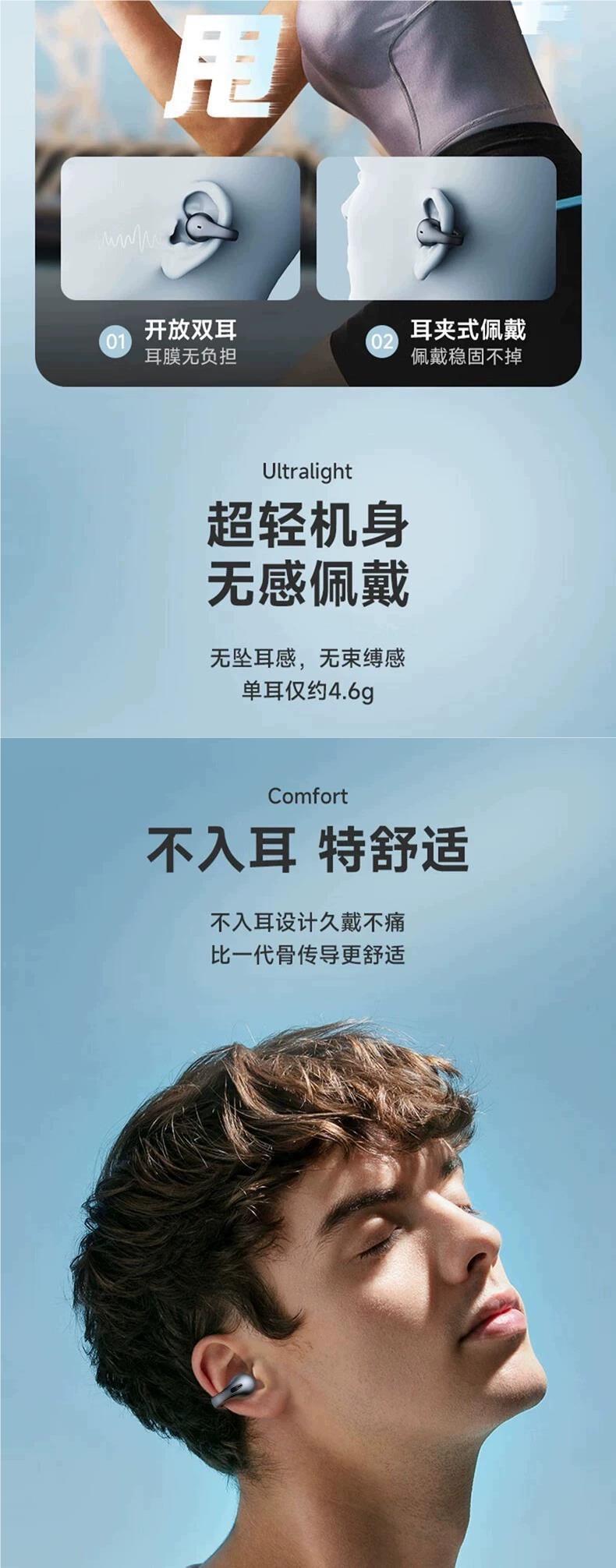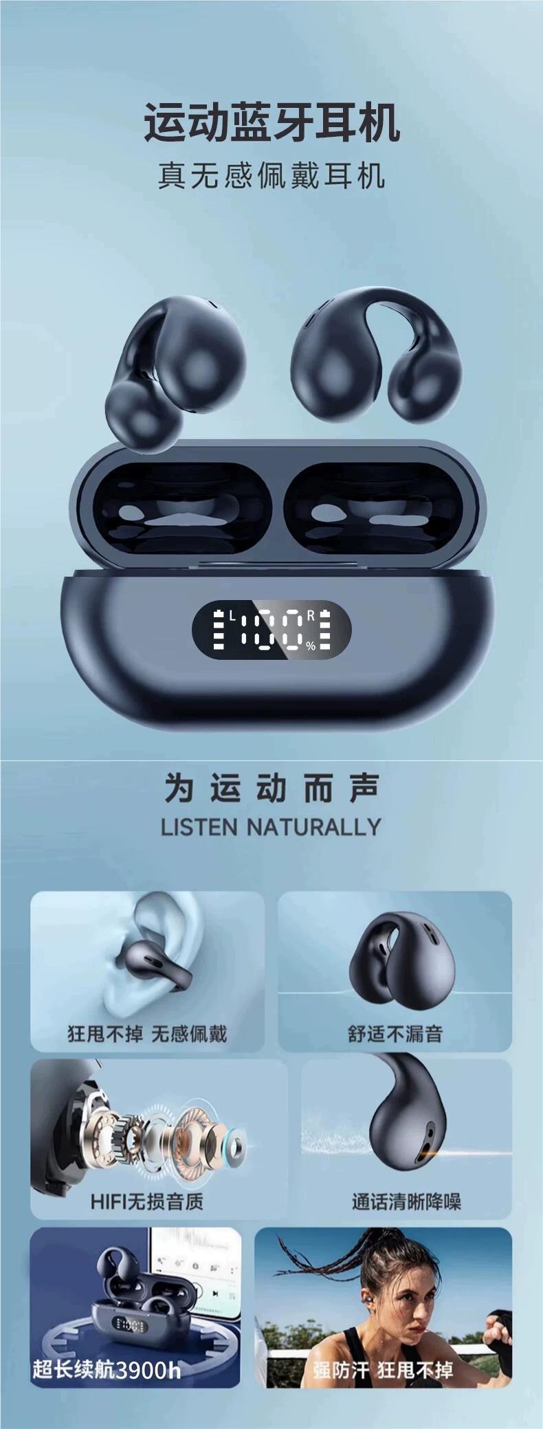 真骨傳導藍牙耳機2024年新款無線運動跑步夾耳式適用索尼華爲蘋果