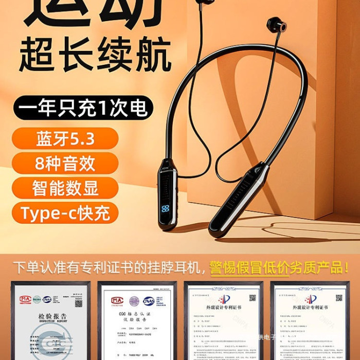 頂配版古典黑【音質續航提升300%+進口低功率5.3芯片+LED高清數顯屏+液態矽膠頸掛】
