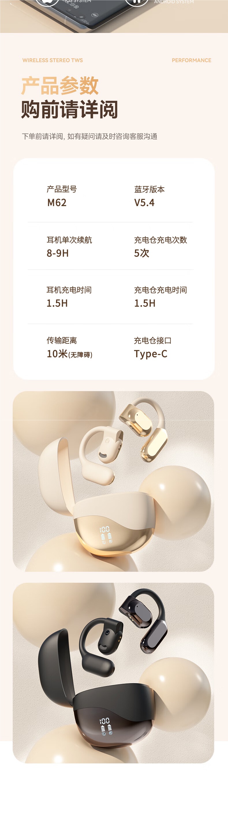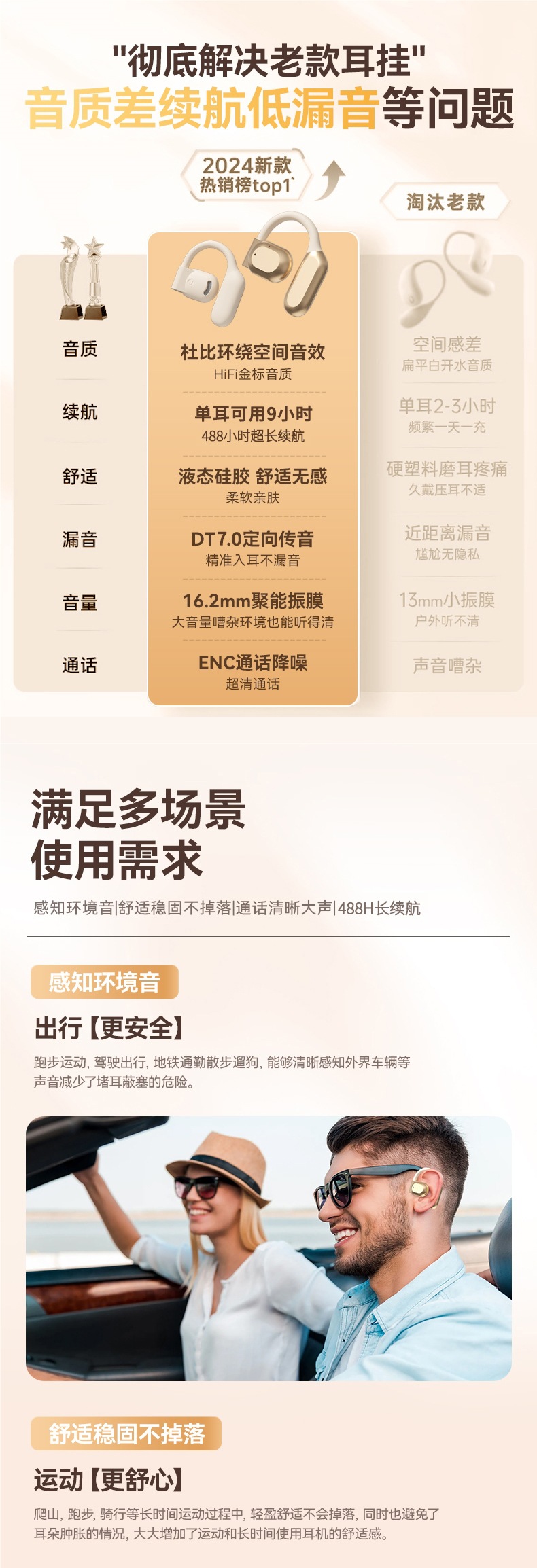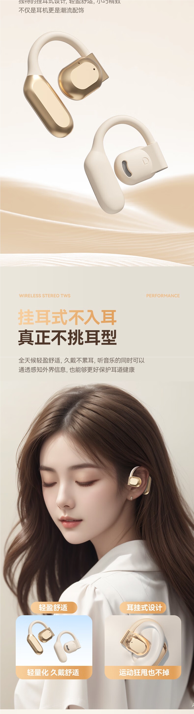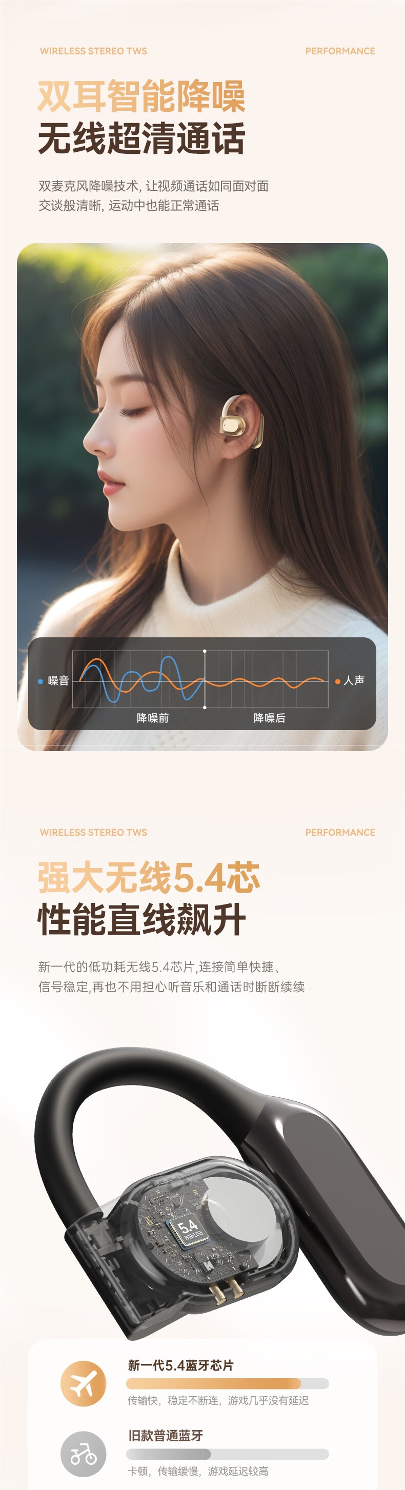 柏林之音】藍牙耳機骨傳導2024新款無線耳夾掛耳式運動不入耳降噪