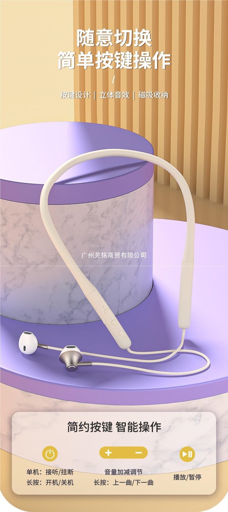 頸掛脖式無線藍牙耳機運動型跑步2024新款專用頭戴式掛耳降噪1438