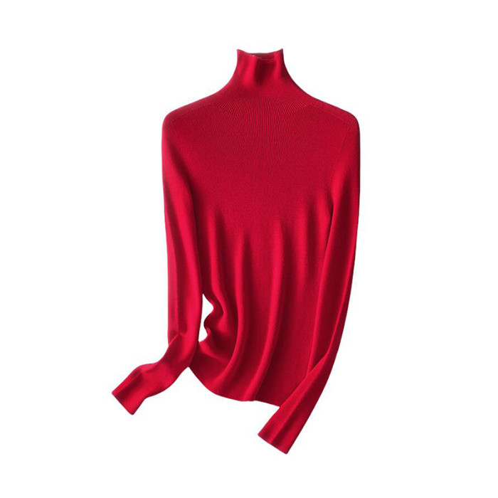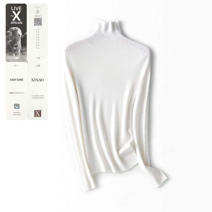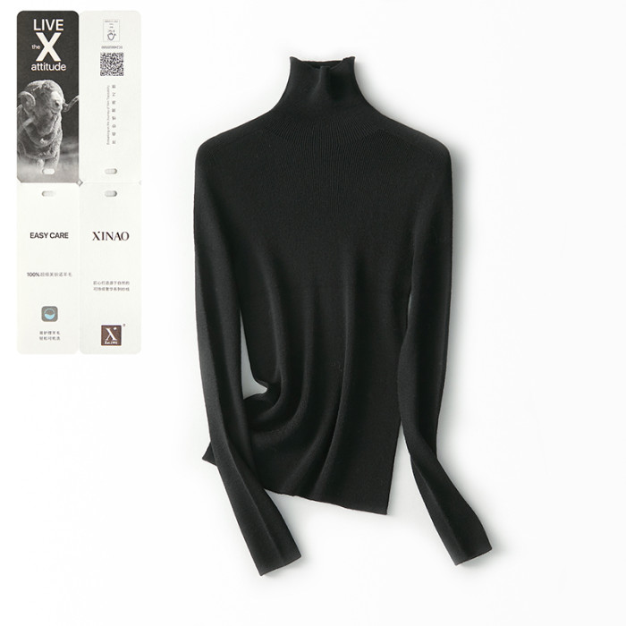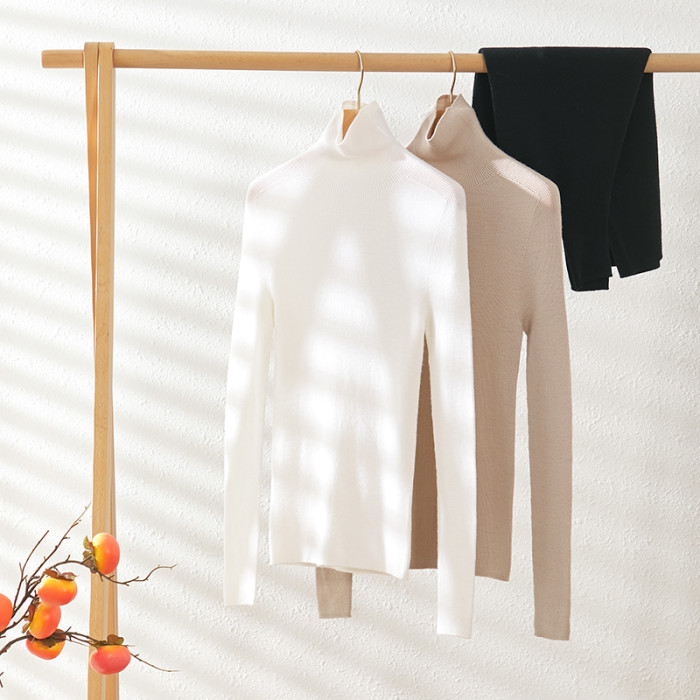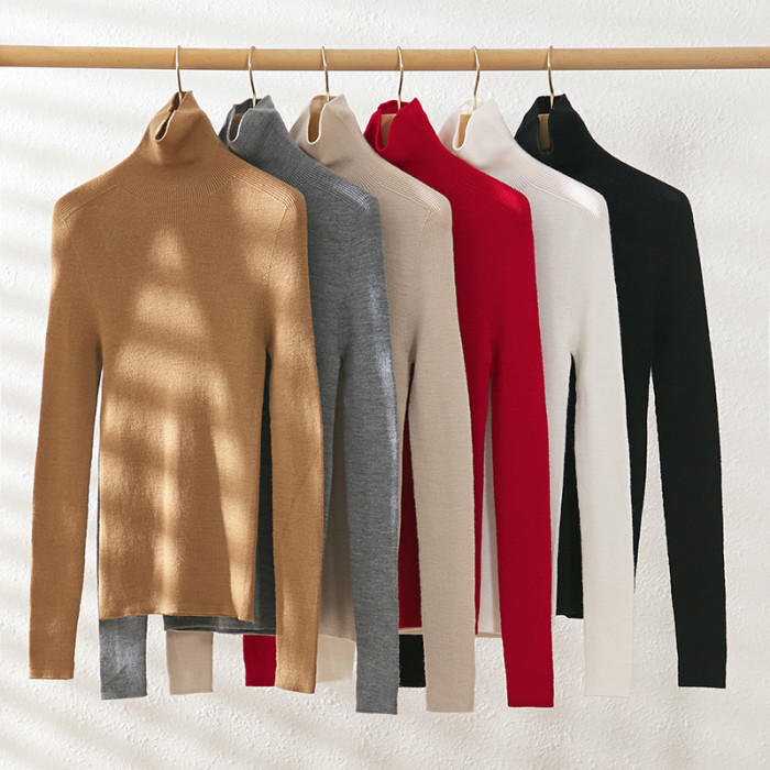 48支無縫一體成型精紡美麗諾羊毛高領舒適百搭修身針織衫打底衫女