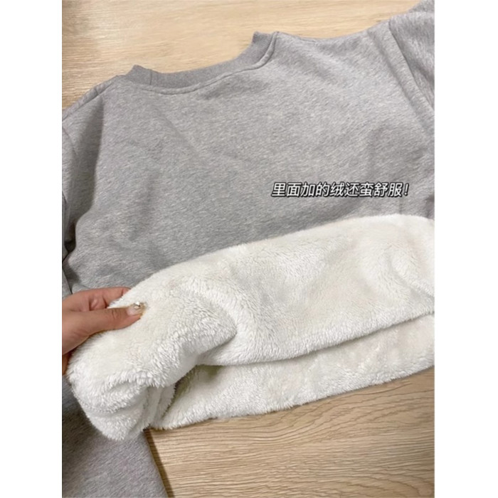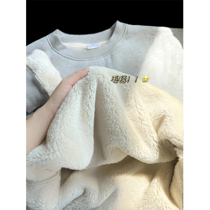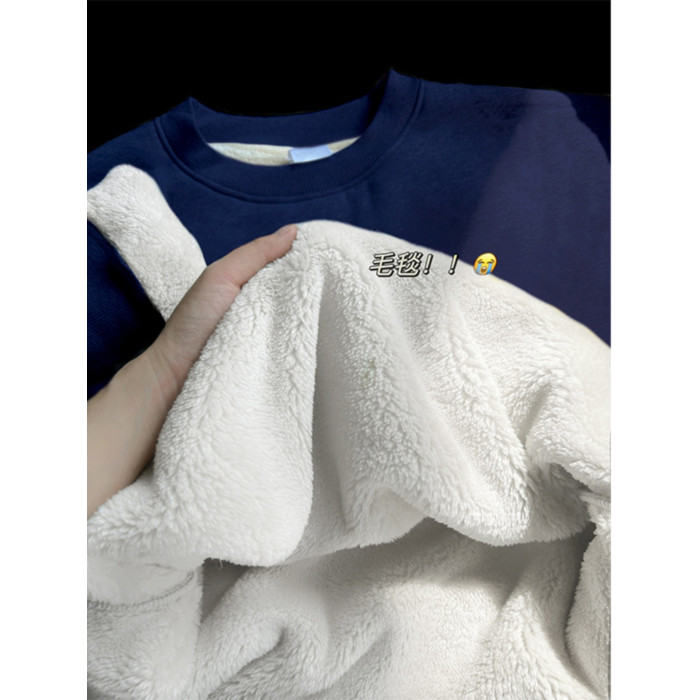 羊羔絨衛衣男士冬季加絨特厚600g重磅打底衫零下40度圓領內搭男款