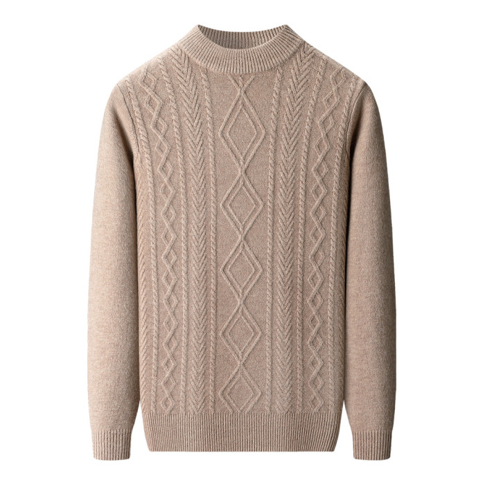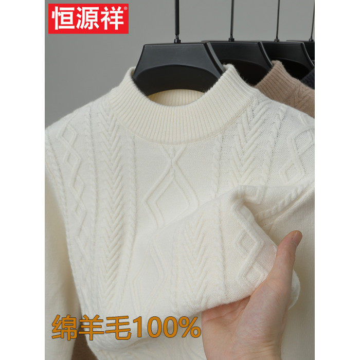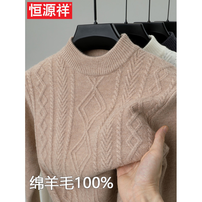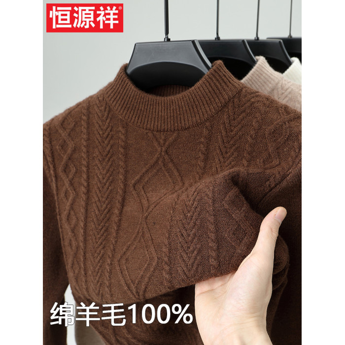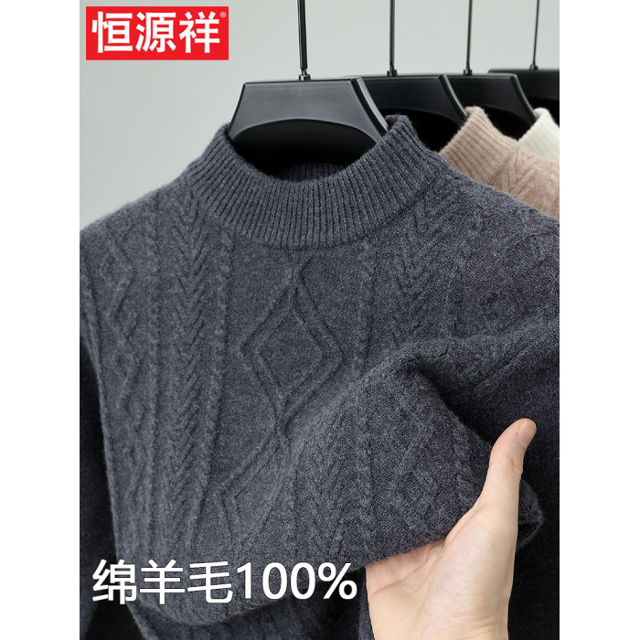 恒源祥羊毛衫半高領加厚保暖扭花休閒中年男士針織打底衫冬季毛衣