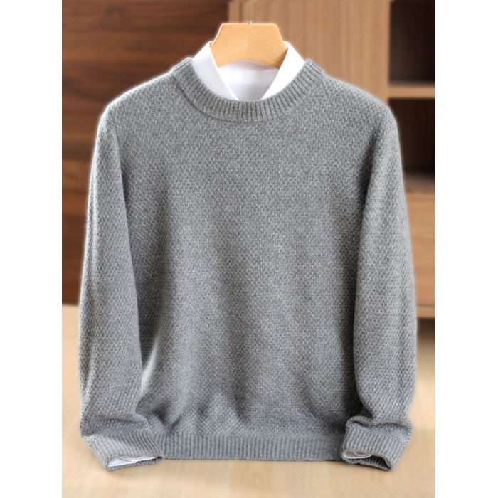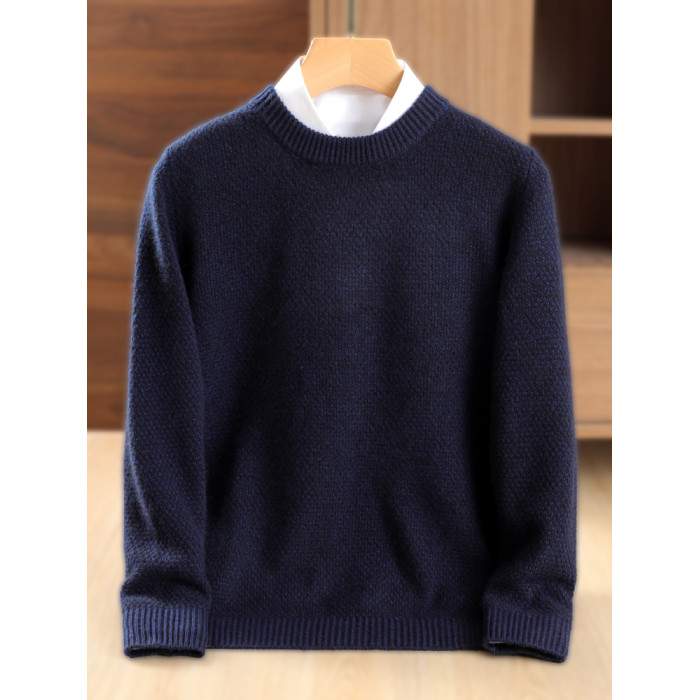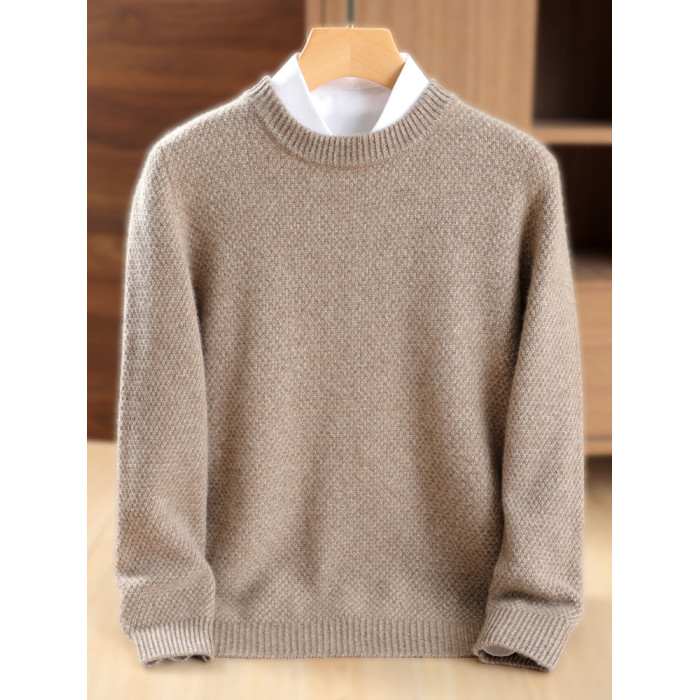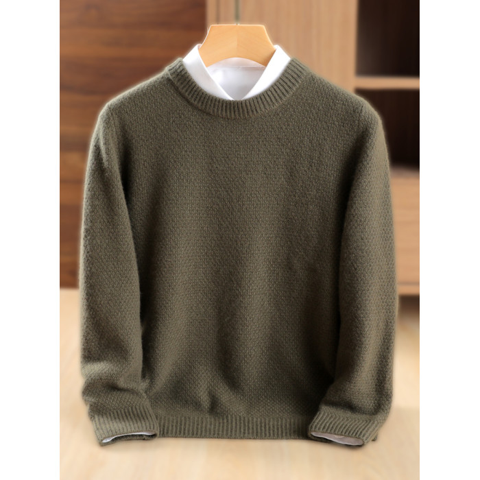 秋冬羊絨衫男圓領毛衣純色寬松慵懶加厚上衣套頭羊毛針織打底衫