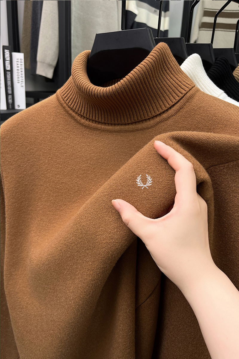 FP麥穗可翻高領羊毛衫手感男冬季加絨加厚重磅保暖針織打底衫毛衣