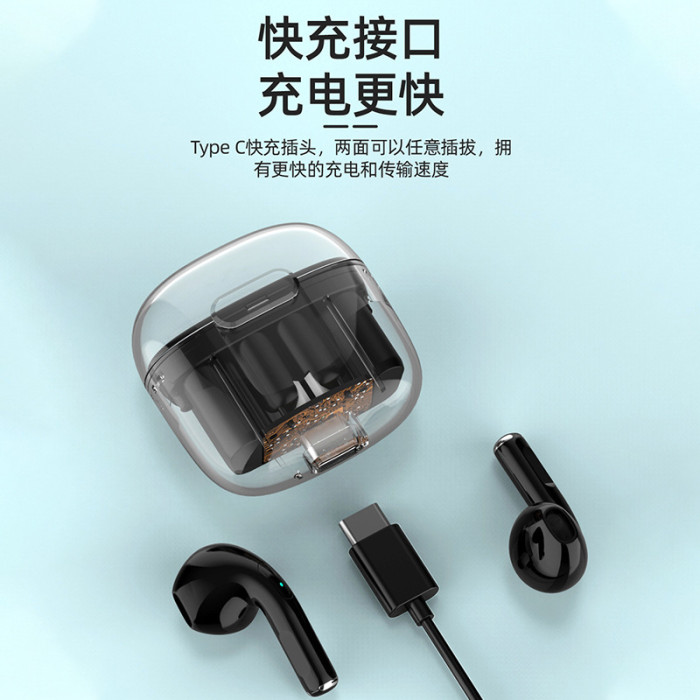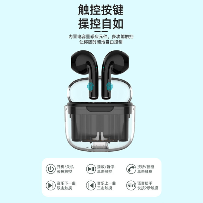 爆款TWS透明藍牙耳機超長續航雙耳音樂降噪無線運動耳機